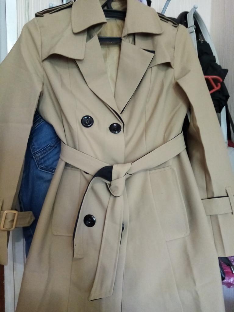 VANGULL Women Classic Belt European Trench Coat Khaki Black Double Breasted Business Coat