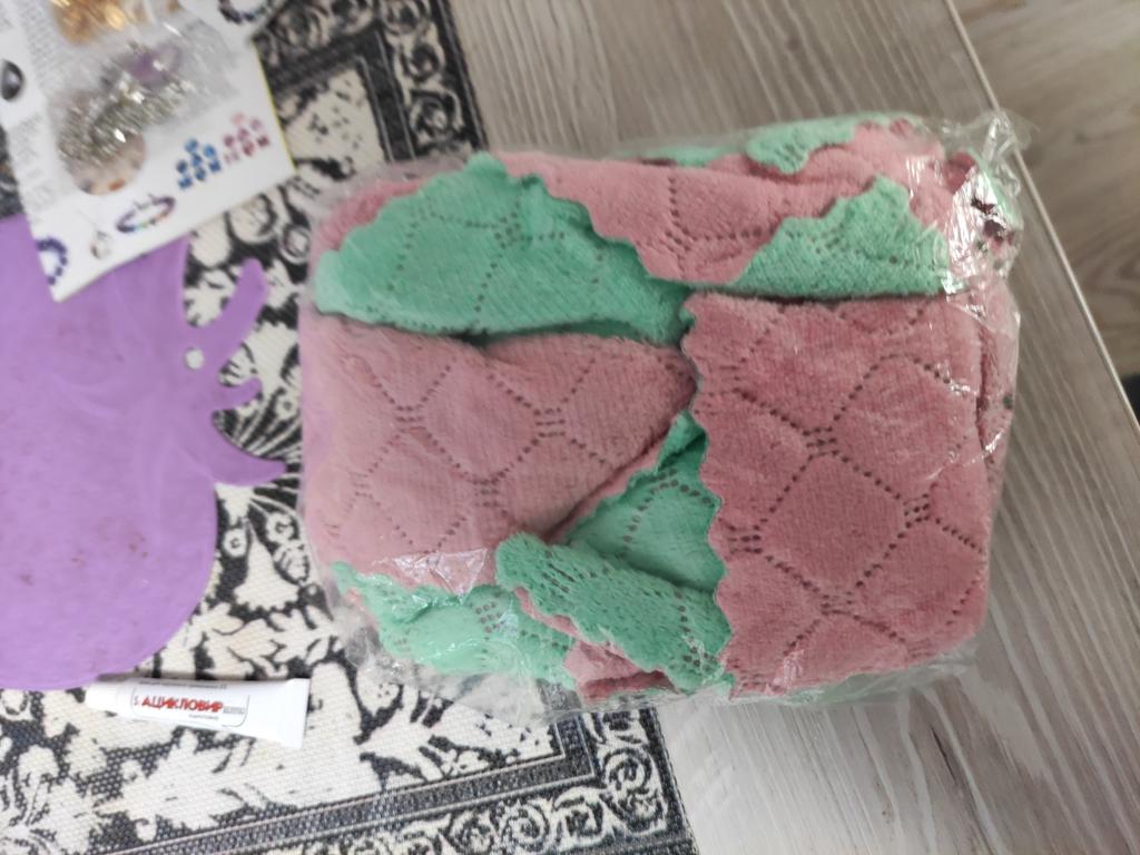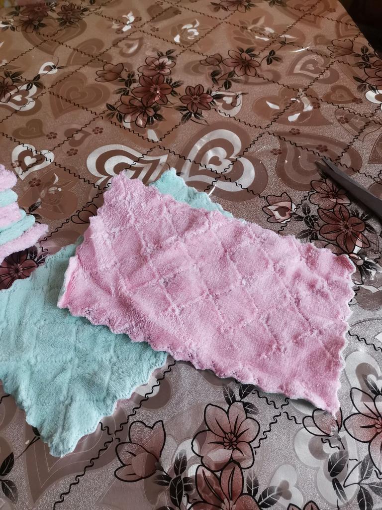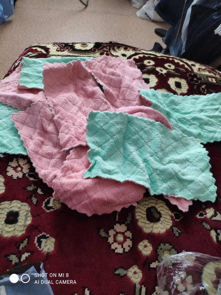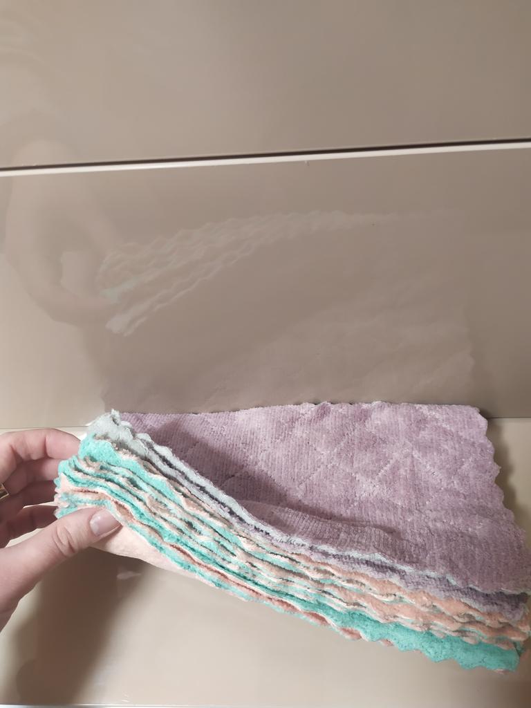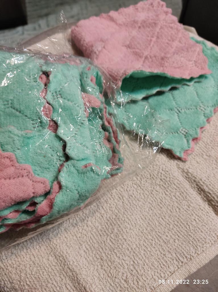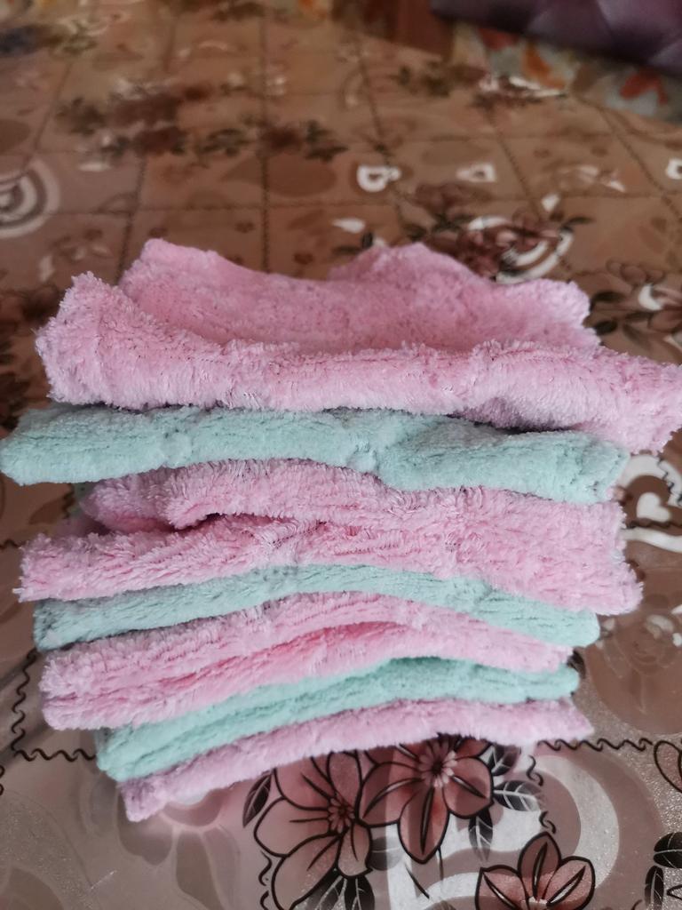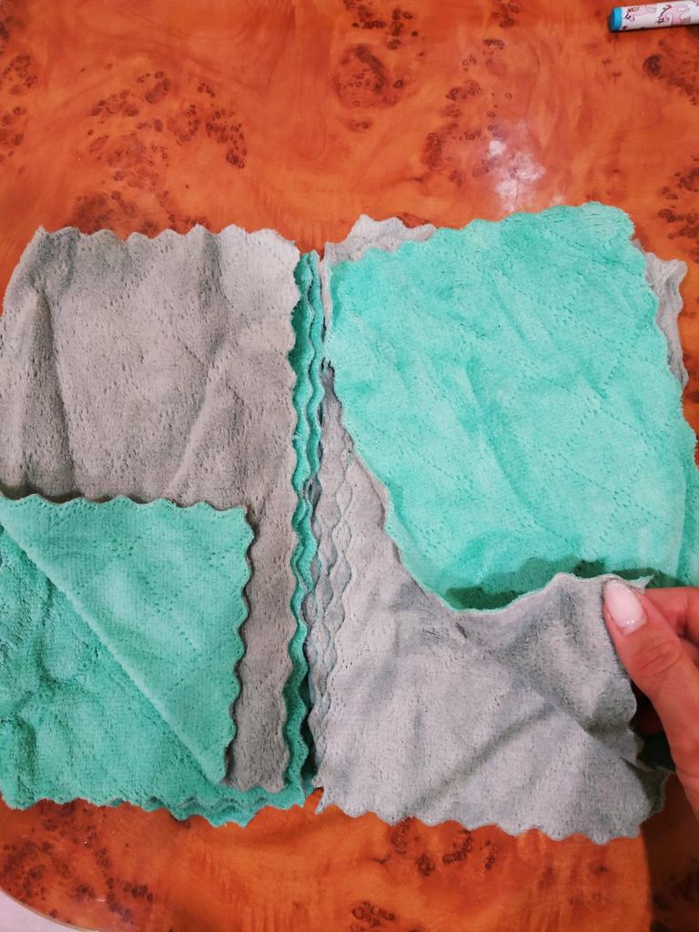 - Quantity corresponds (10 pieces). The size of the rags is 25 cm by 13 cm.