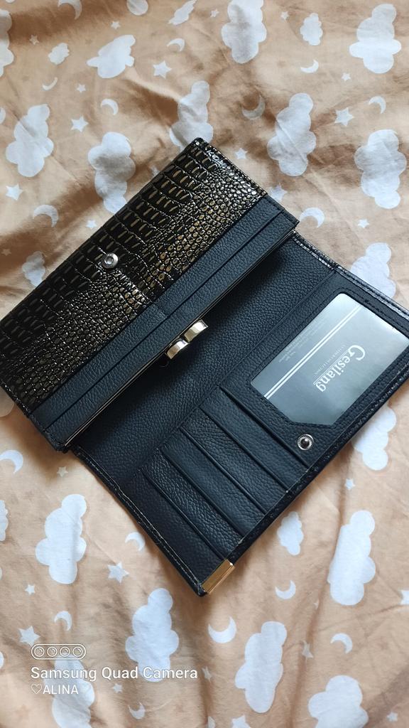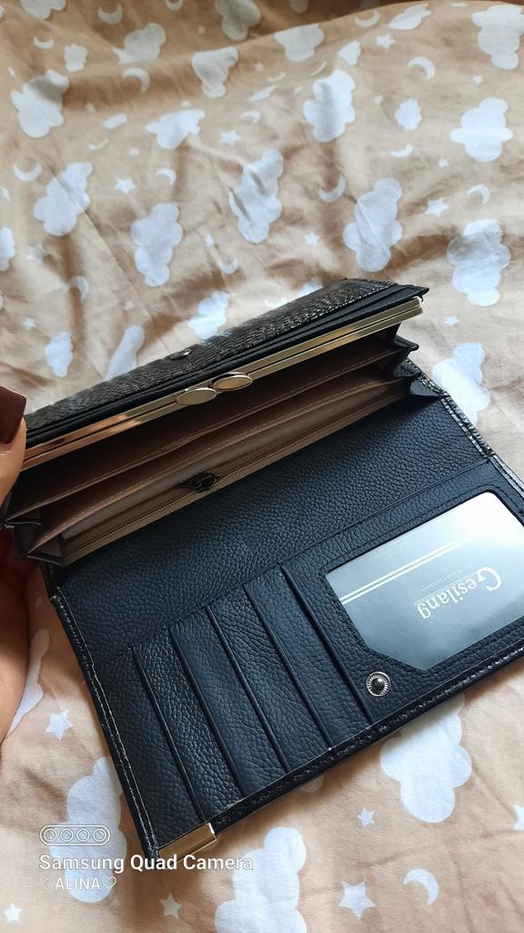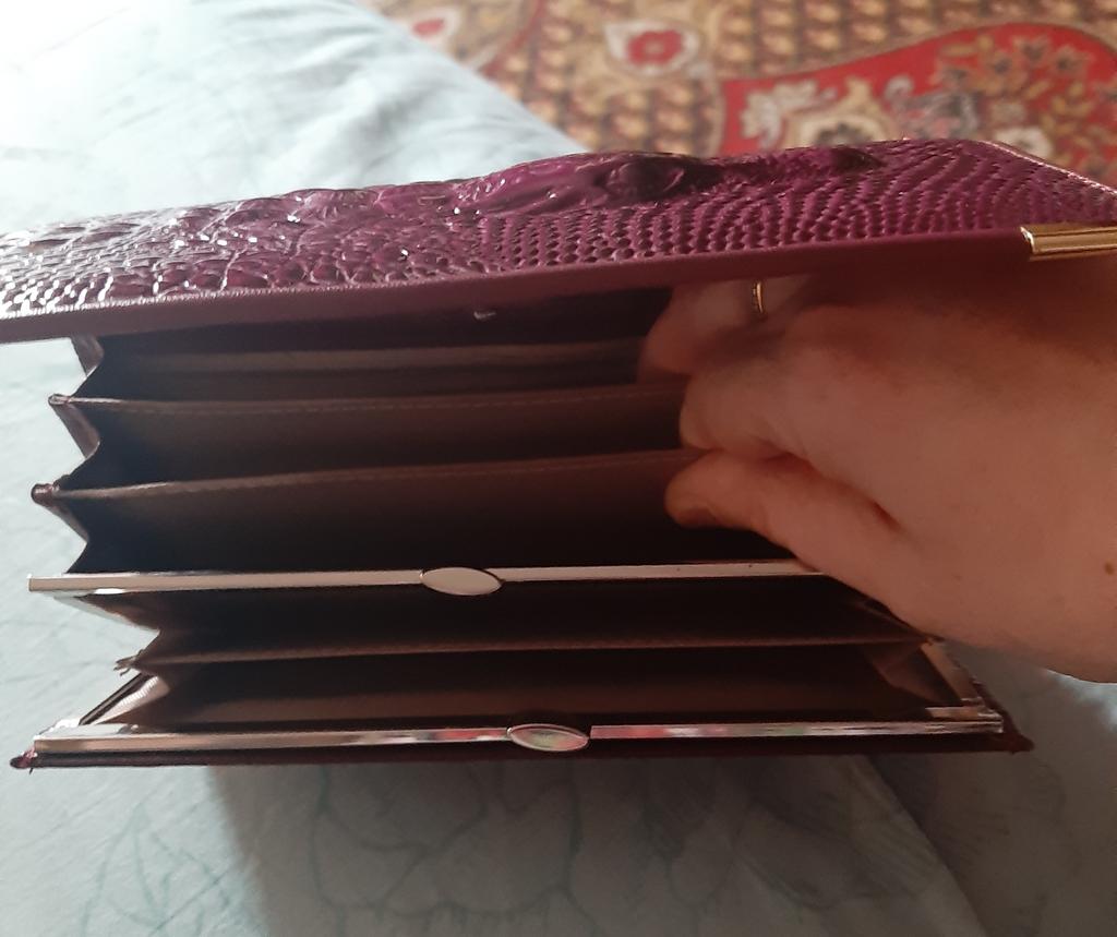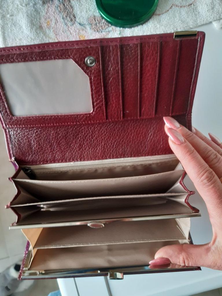 Original, solid, with lots of pockets, with a tightly closing coin compartment. Resists time. Sees quickly in a large bag. A little heavy