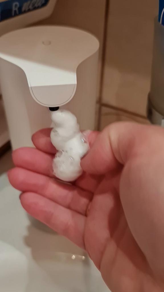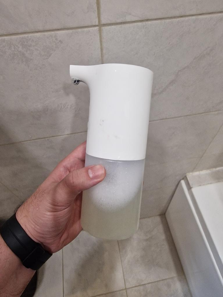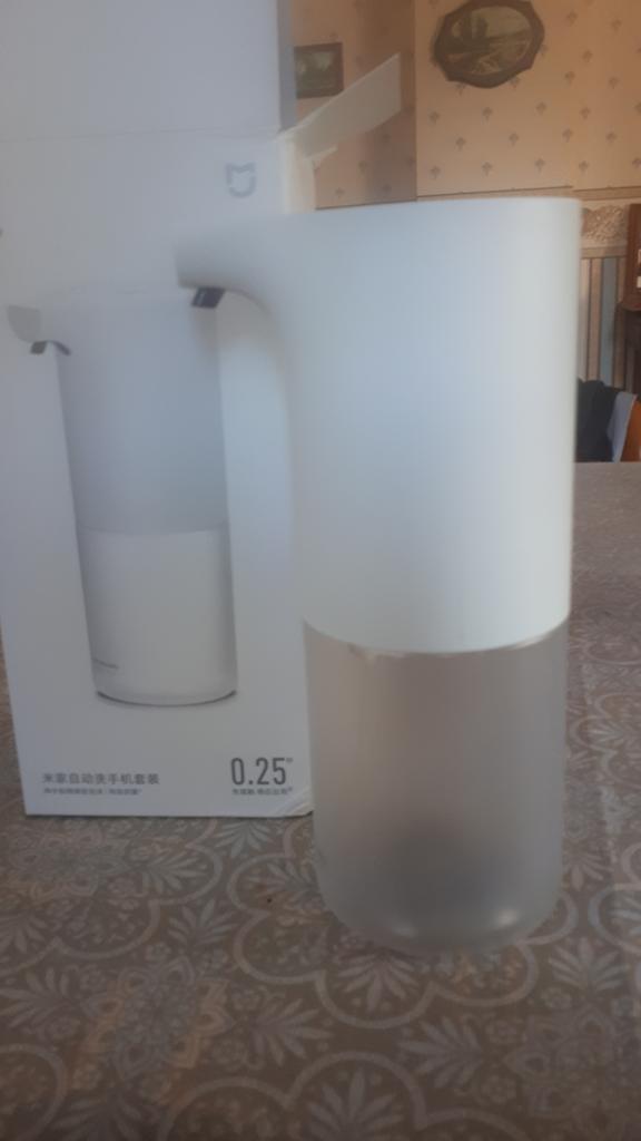 This is a Xiaomi automatic foaming soap dispenser. The package arrived in perfect condition and on schedule. The dispenser is white with a simple and linear design. The lower part consists of a transparent container that will color according to the color of the soap you use. To put it into operation you will need to put 4 AA batteries included in the package. In the transparent container you must put 1/3 of soap and 2/3 of water, in this way, simply passing your hand underneath, the soap will come out in the form of a thick and soft foam. The product is great and works great I recommend it!
