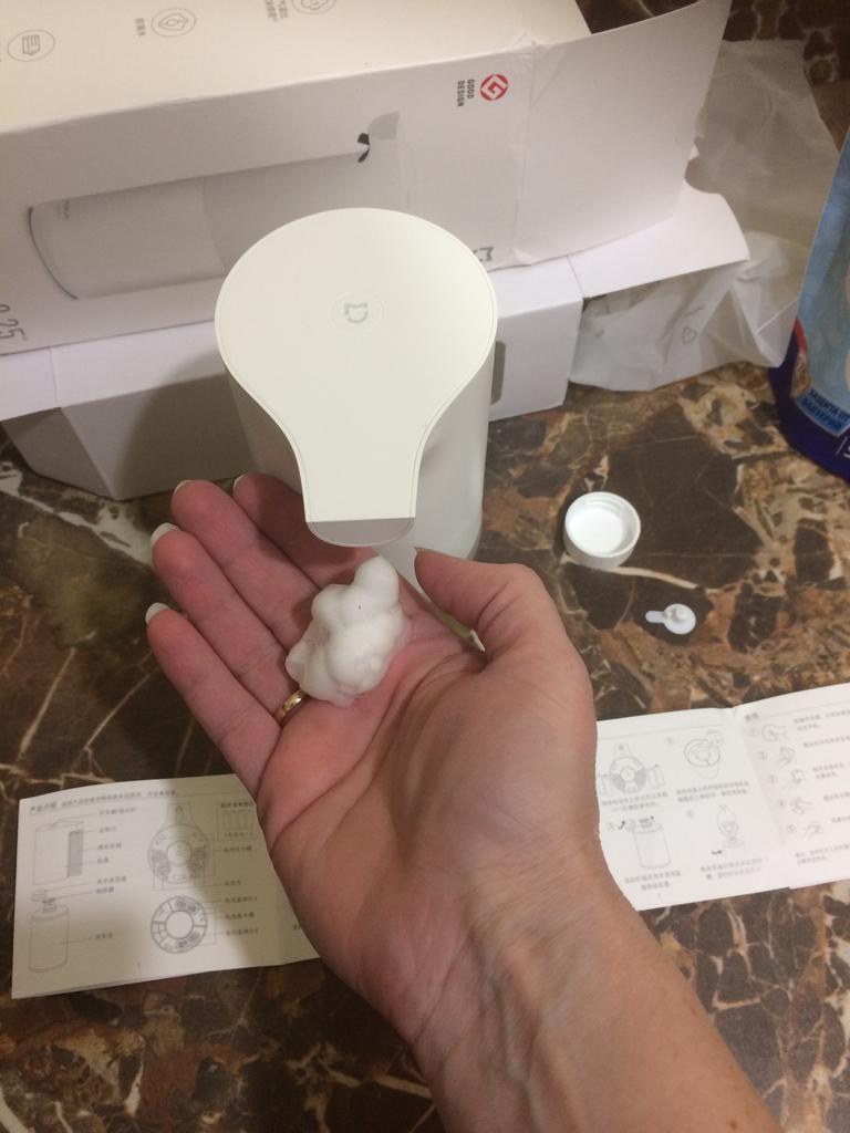 Everything is fine, but... Initially it was sold with soap, as there were some leftovers. The box has been opened. Batteries ala Xiaomi, interesting) The main problem is that I can’t connect the reservoir to the dispenser... it doesn’t attach in any way, so it just remains “put on” the container