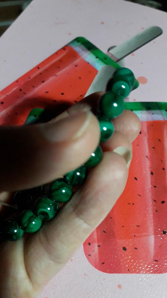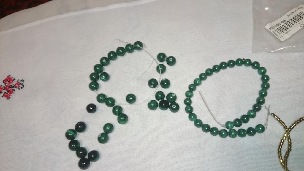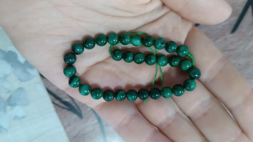 I expected that there would be more beads. Malachite is natural, of good quality. The string is small, enough for 1 bracelet