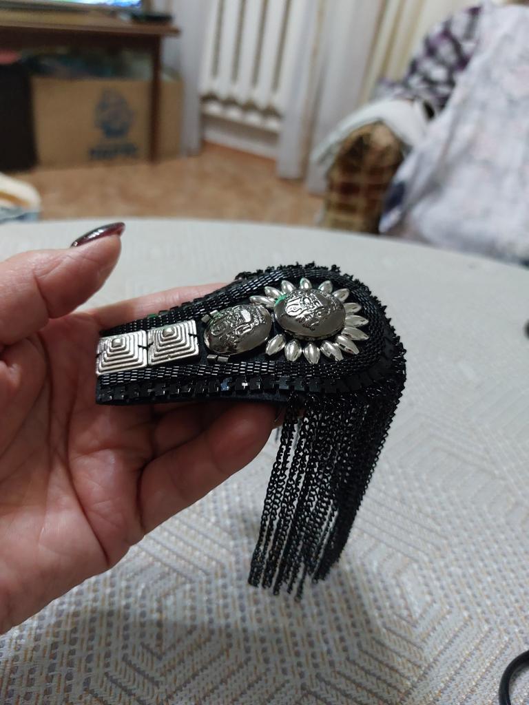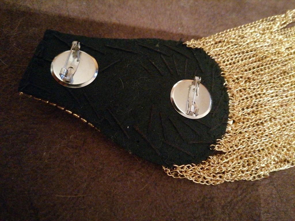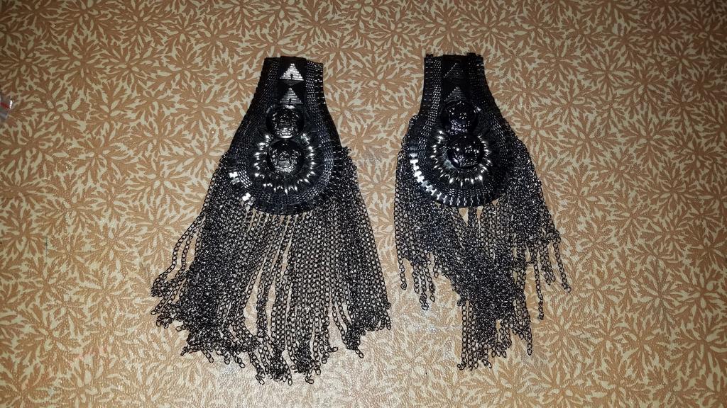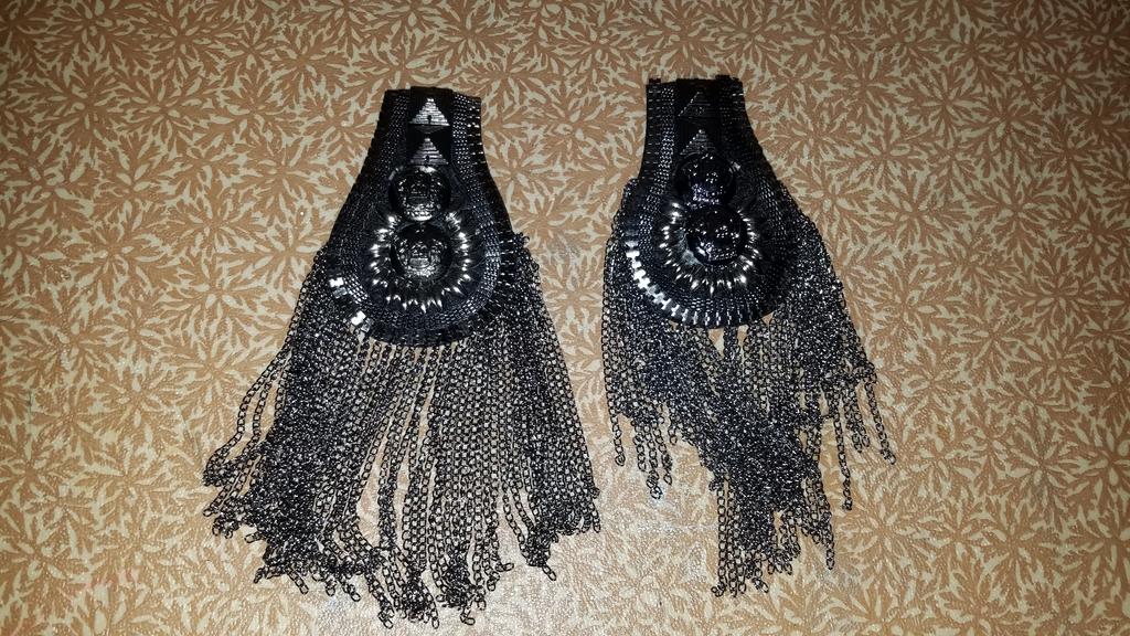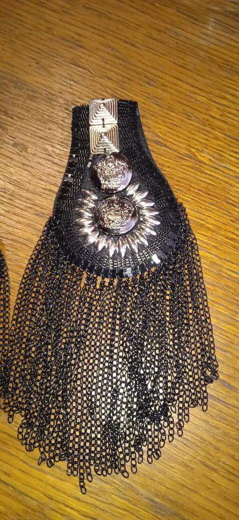 Heavy epaulettes, beautifully neatly made. On the back side there are two pin fasteners. They will quite decorate a suit or dress