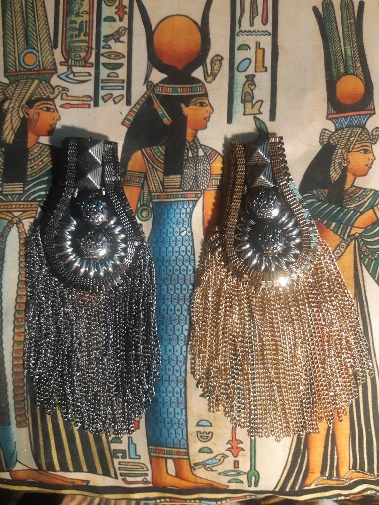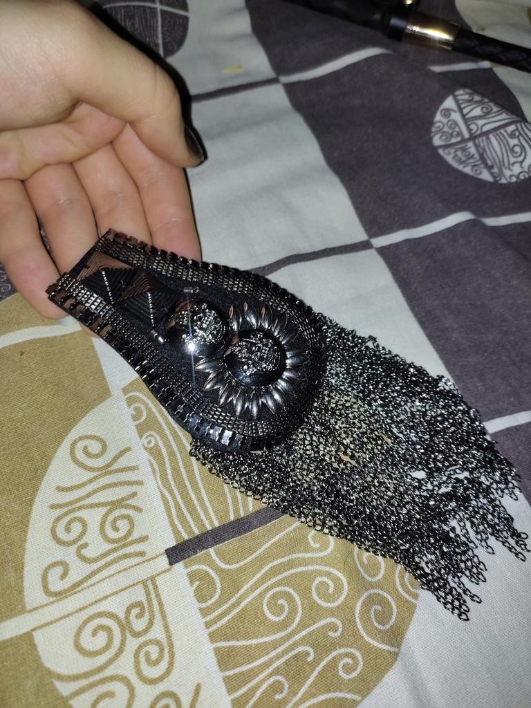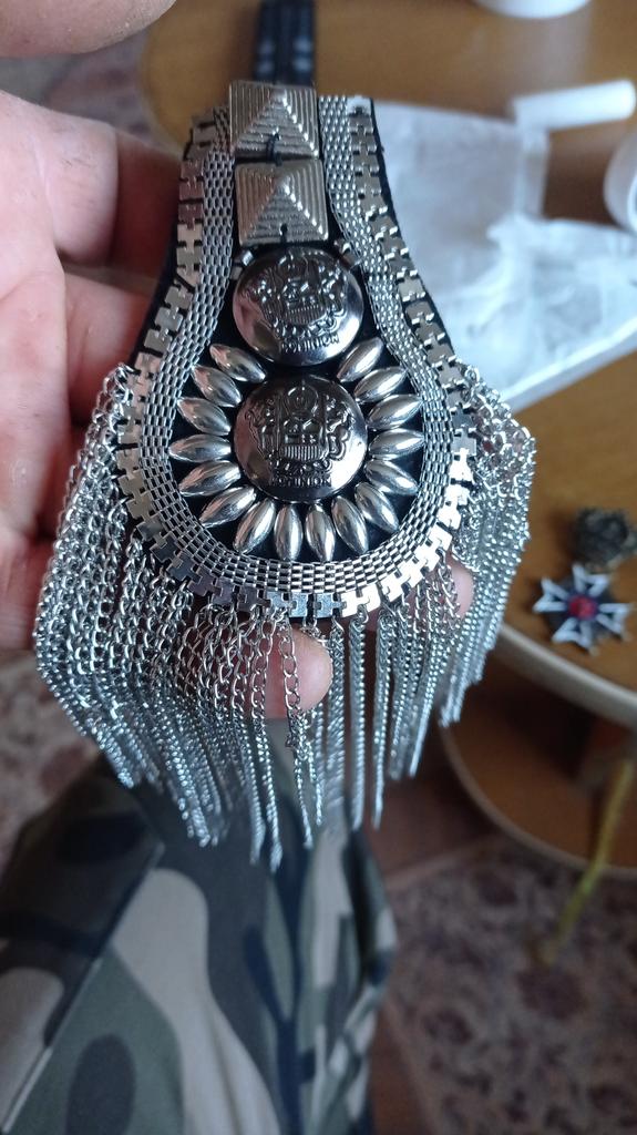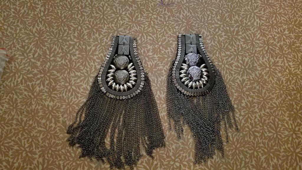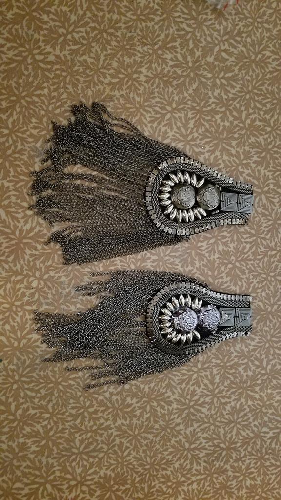 Heavy epaulettes, beautifully neatly made. On the back side there are two pin fasteners. They will quite decorate a suit or dress
