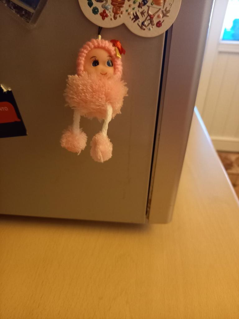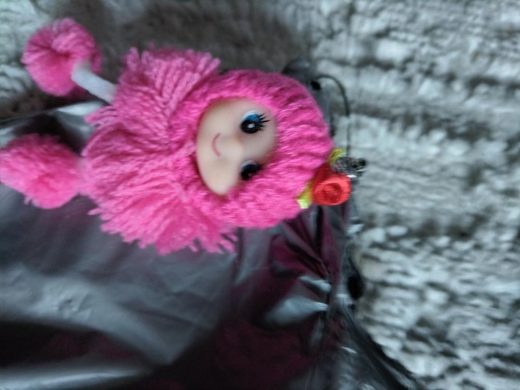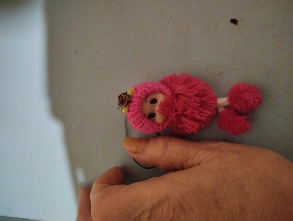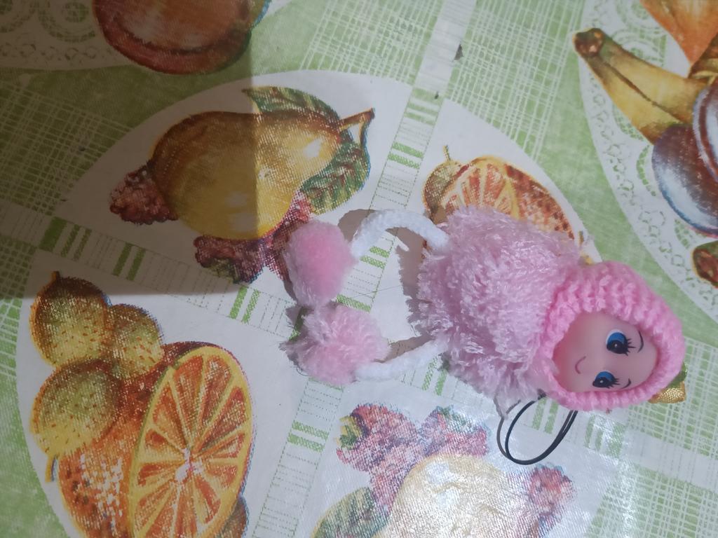 The hat is glued on crookedly, the doll itself is made of threads, I thought it was fur, but no, itβs not pretty