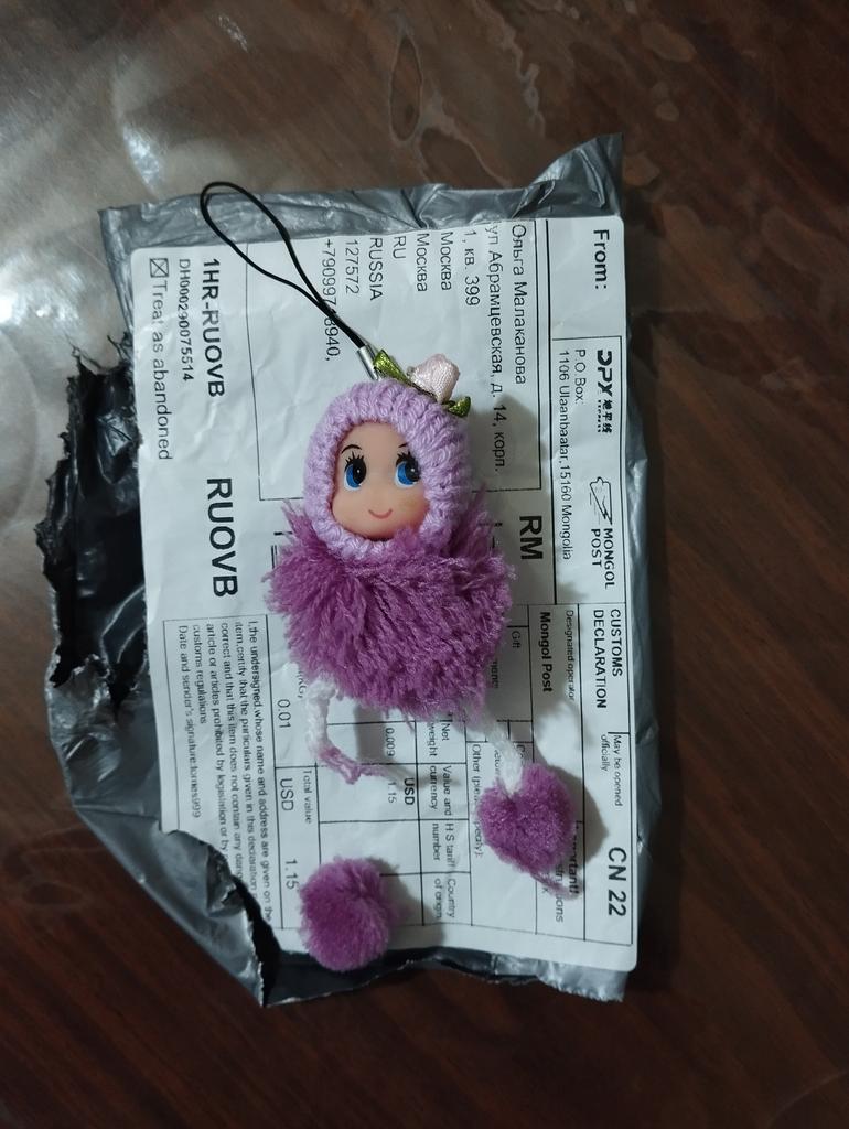 Ordered on 15.05. Received on 03.06. Very cool and small keychain doll, I thought it would be bigger, but such a cute toy. I recommend