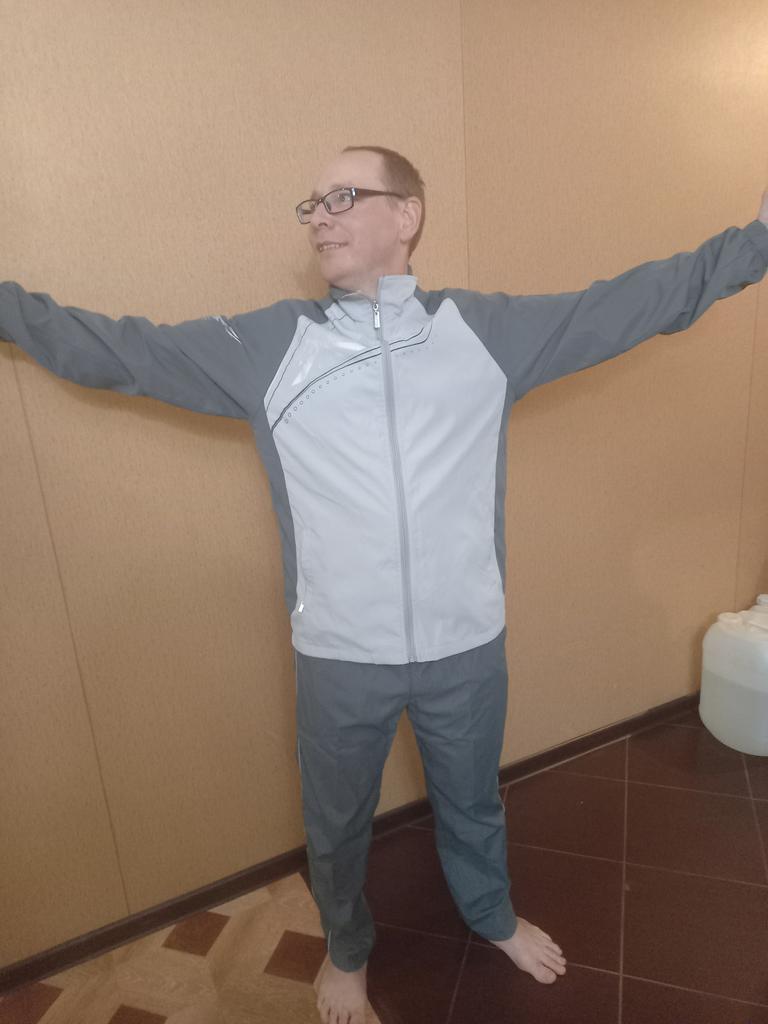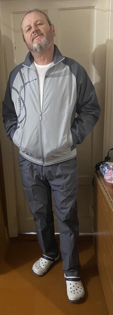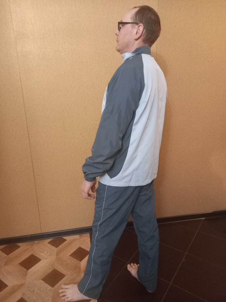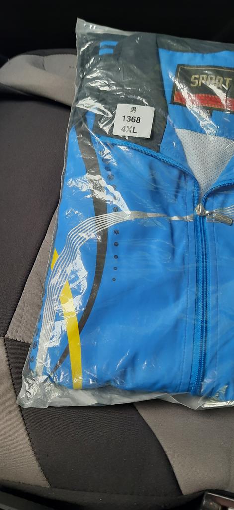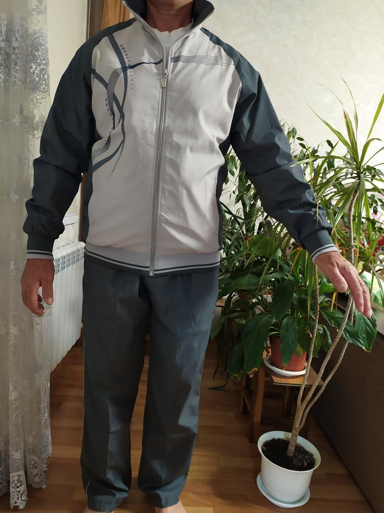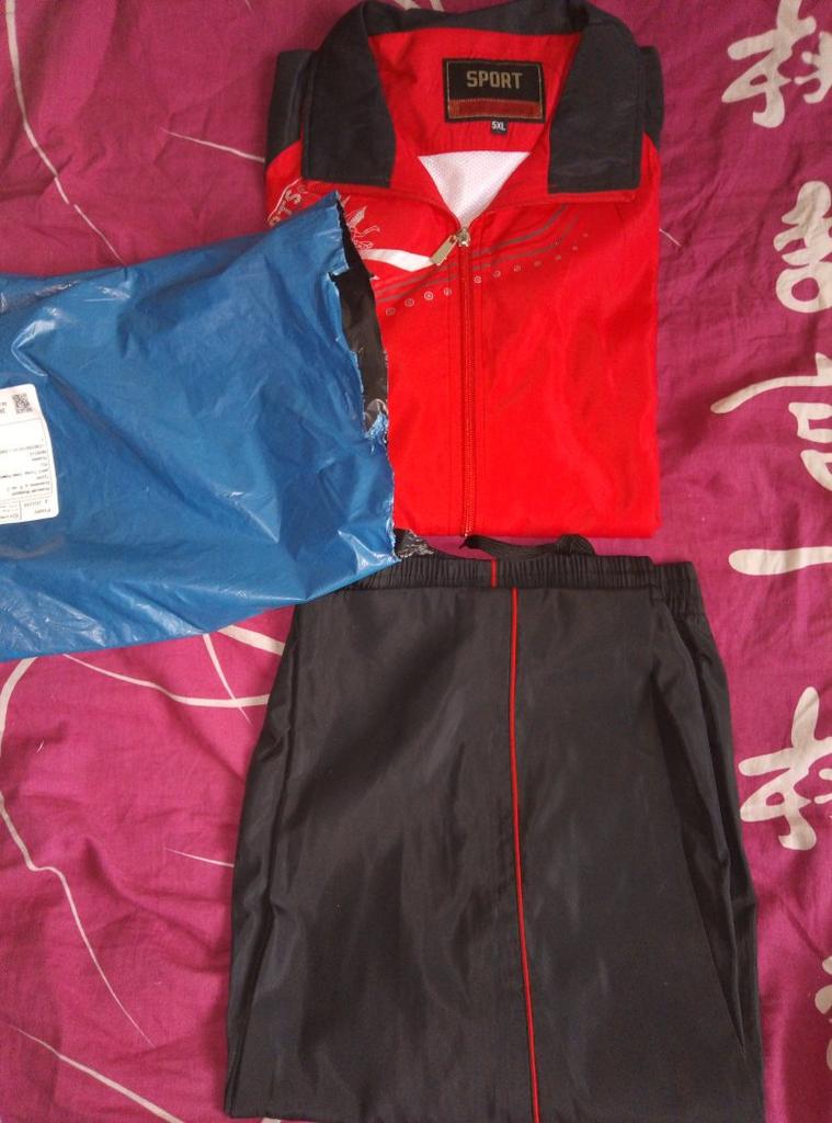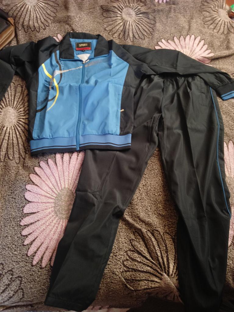 Sports suit. The fabric is excellent, the jacket size is right (XXXL), but the trousers are a bit short and wide. The width is not visible in the photo.