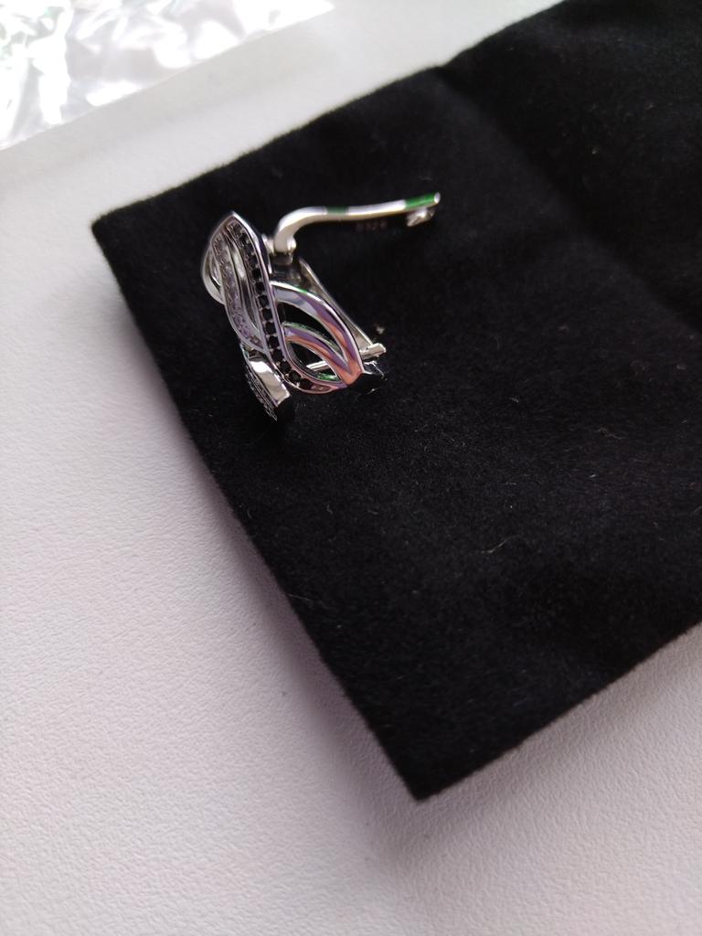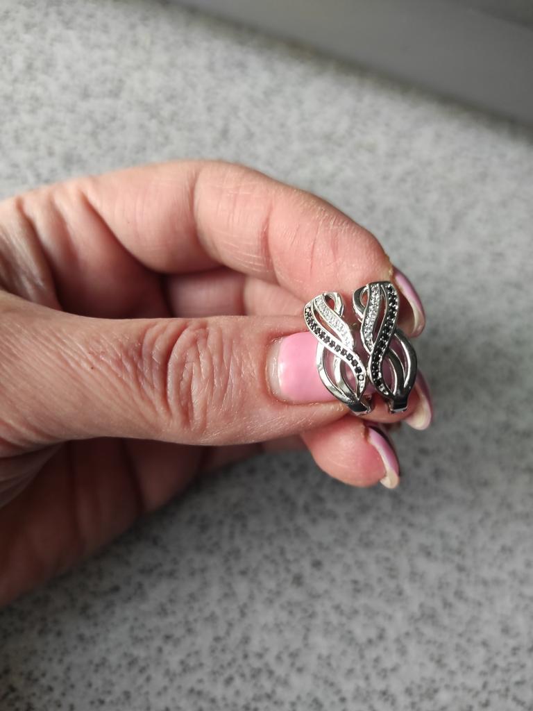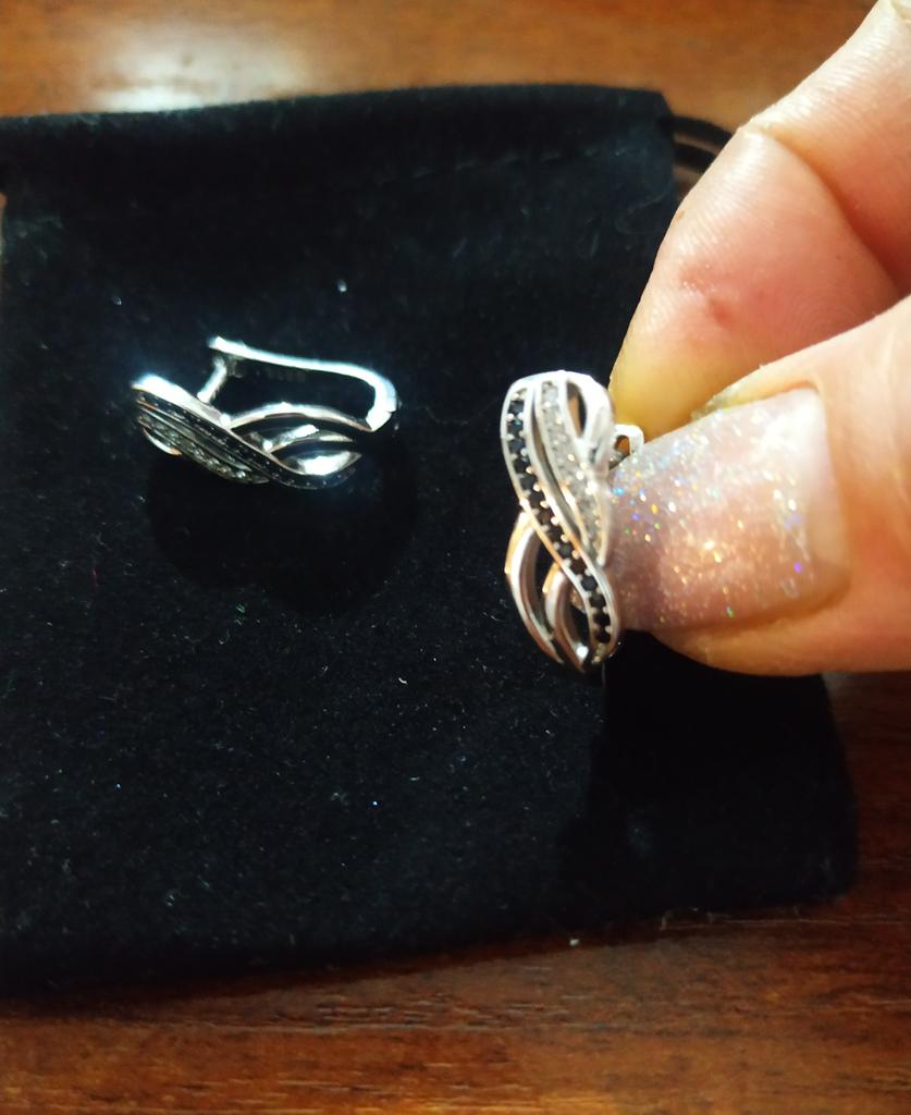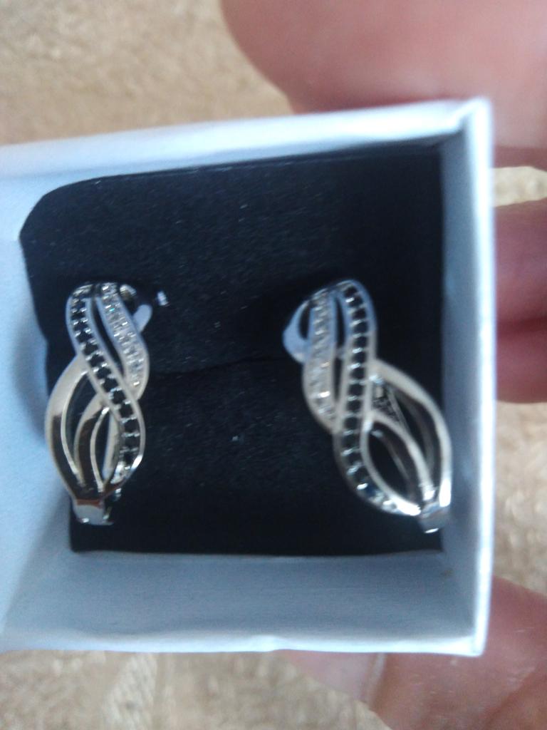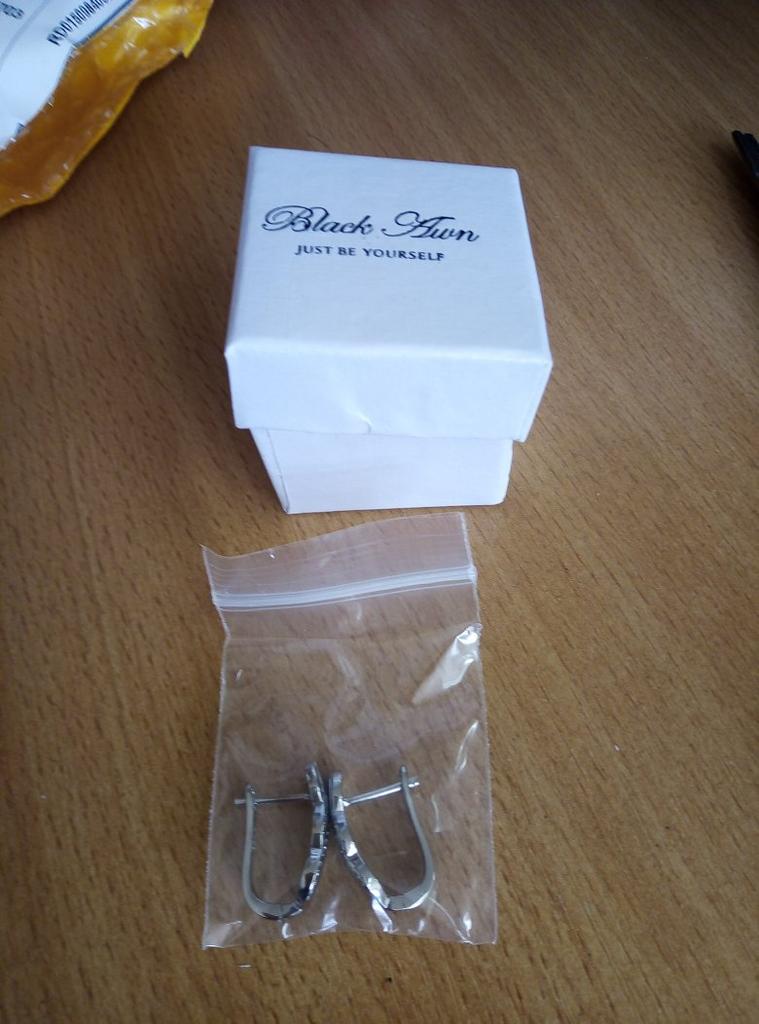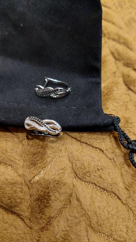 Earrings for women, tm Black Awn. ✈️Order delivery - 20 days. ✉️Packaging: envelope with air bubbles and branded cardboard box. 👩🔬Each earring has inserts of black and transparent stones, which have a very good jewelry shine. The inserts are made symmetrically. Although it is jewelry, but made very well. These earrings for everyday use, or as a gift - a very good option. And from my own experience I will say that from the outside these earrings look very "jewelry", because I have been asked so many times: "for how much did you buy these silver earrings?". What not to count! The most interesting thing is that no one believed that they had such a price! Fastener type: English lock. There is a sample. The color of the metal is similar to silver. The length of the outside earrings is about 2 cm. Length on the inside is about 1.3 cm. 🙂These earrings will perfectly complement business or casual clothes, and will go well with an evening dress. Earrings are not heavy, made very neatly and look very elegant, like real jewelry. 💳Price on the day of purchase 72 UAH. ✅The appearance of the earrings fully corresponds to the seller's photo. The purchase was a pleasure - the earrings are high quality, look great and are moderate! The seller is trustworthy! # The latest photos compare in size with other earrings. 🎁 If you want to receive earrings in a gift cardboard box, instead of a bag, order 2 items in this store at once.