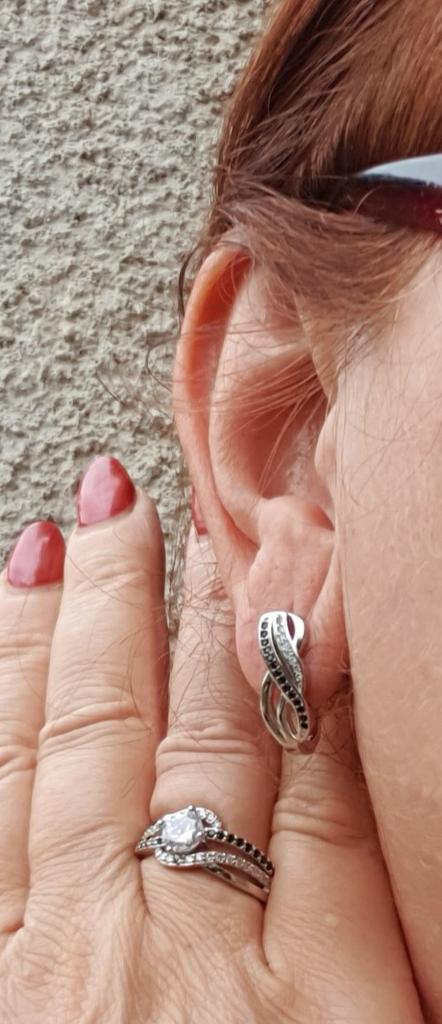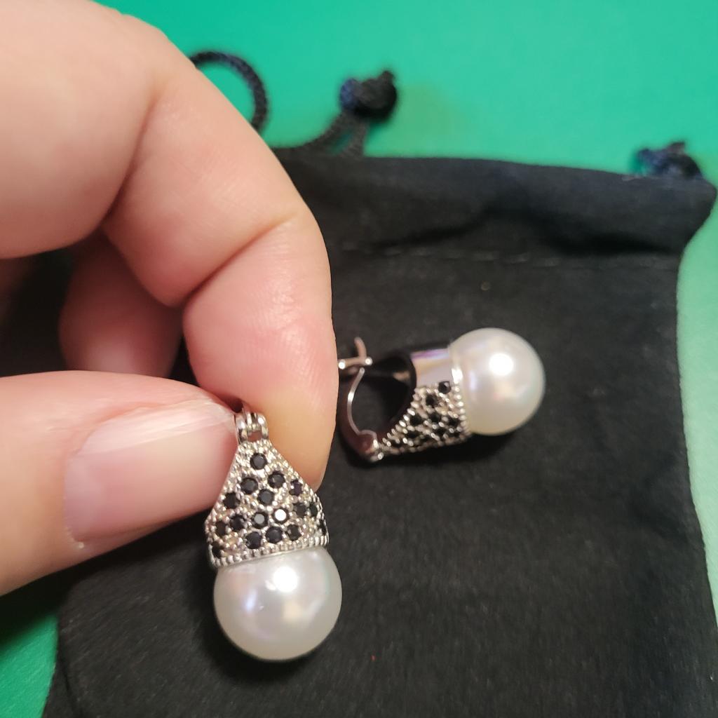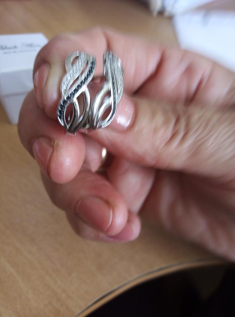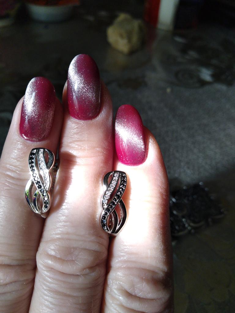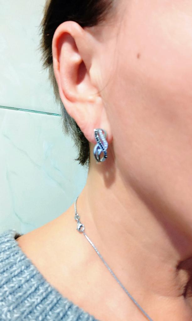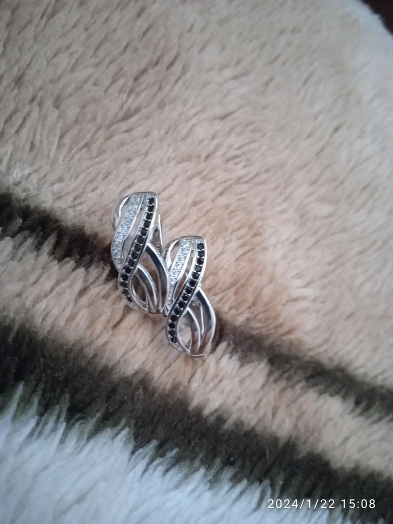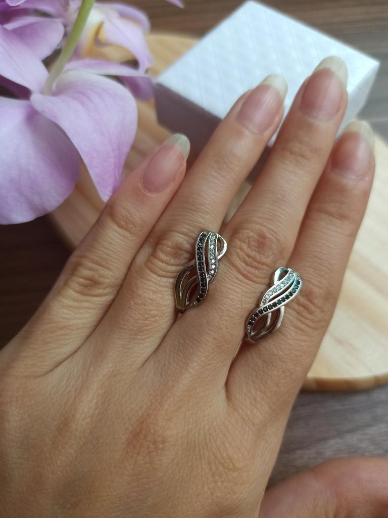 Earrings for women, tm Black Awn. ✈️Order delivery - 20 days. ✉️Packaging: envelope with air bubbles and branded cardboard box. 👩🔬Each earring has inserts of black and transparent stones, which have a very good jewelry shine. The inserts are made symmetrically. Although it is jewelry, but made very well. These earrings for everyday use, or as a gift - a very good option. And from my own experience I will say that from the outside these earrings look very "jewelry", because I have been asked so many times: "for how much did you buy these silver earrings?". What not to count! The most interesting thing is that no one believed that they had such a price! Fastener type: English lock. There is a sample. The color of the metal is similar to silver. The length of the outside earrings is about 2 cm. Length on the inside is about 1.3 cm. 🙂These earrings will perfectly complement business or casual clothes, and will go well with an evening dress. Earrings are not heavy, made very neatly and look very elegant, like real jewelry. 💳Price on the day of purchase 72 UAH. ✅The appearance of the earrings fully corresponds to the seller's photo. The purchase was a pleasure - the earrings are high quality, look great and are moderate! The seller is trustworthy! # The latest photos compare in size with other earrings. 🎁 If you want to receive earrings in a gift cardboard box, instead of a bag, order 2 items in this store at once.