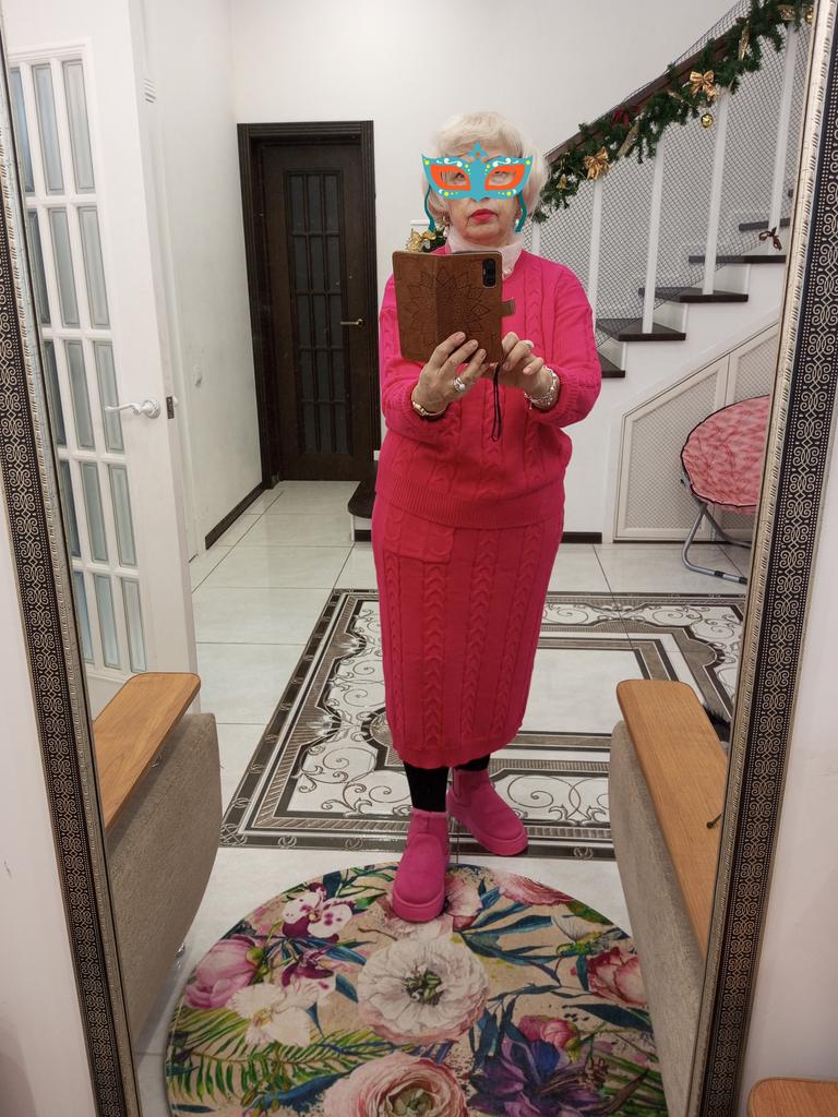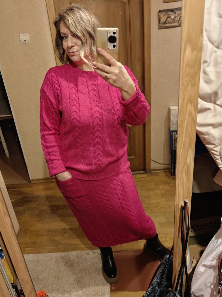 The suit is cool, soft, warm. But the skirt is not as long as in the photo, but it still looks beautiful