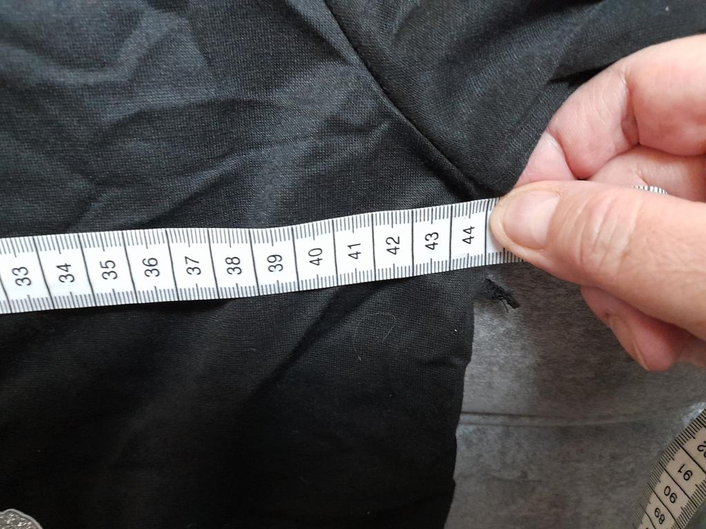 The jacket is 2-3 sizes too small. Bust measurement is 45 cm x 2 = 90 cm. Is this size XL? There is a hole on the side and the fabric is sticking out. Terrible quality. The stated size does not match the XL. Photo attached.