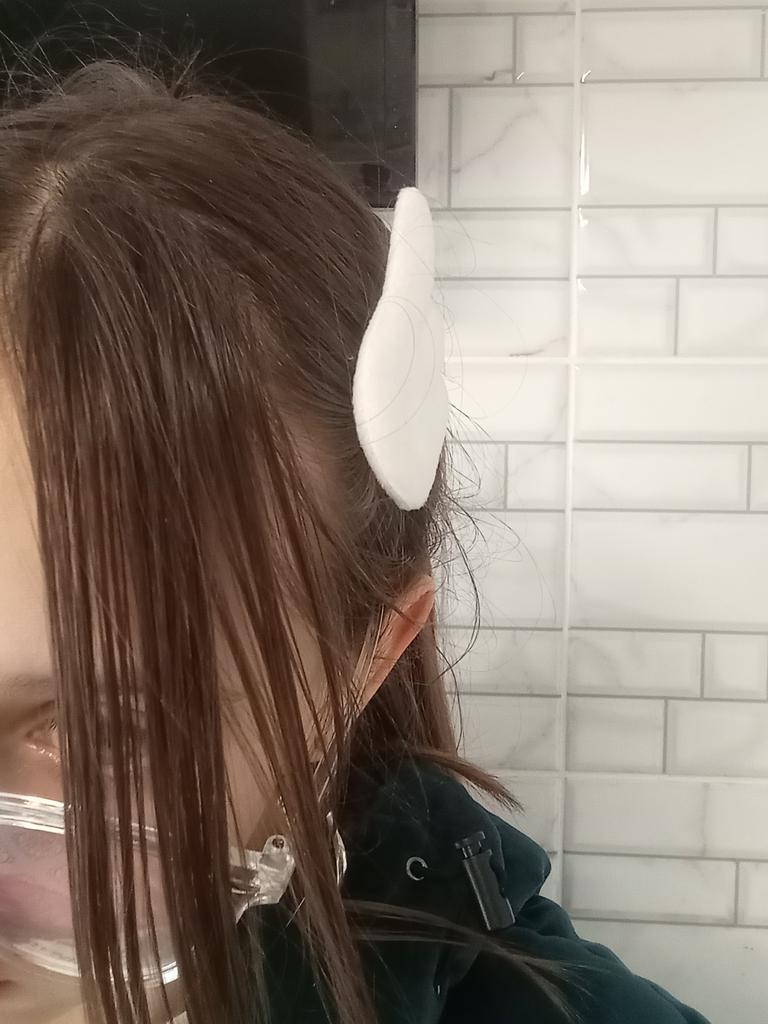 As in the photo. Thank you. The child likes them, soft, not small. They are comfortable and do not fall out of the hair. I recommend