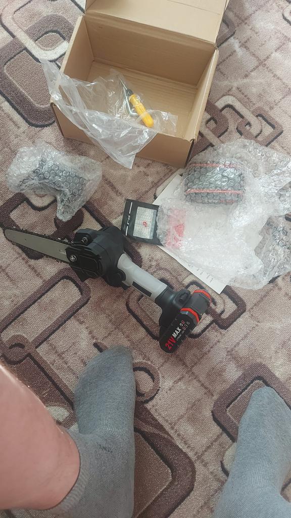 The saw is not assembled yet, I'm waiting for my grandson, I won't be able to do it myself. Everything that is supposed to be according to the insert is there. The overall appearance is very good, I hope it will work the same way. Thank you