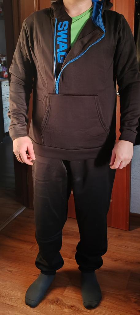 Nice sweatshirt, big sweatpants