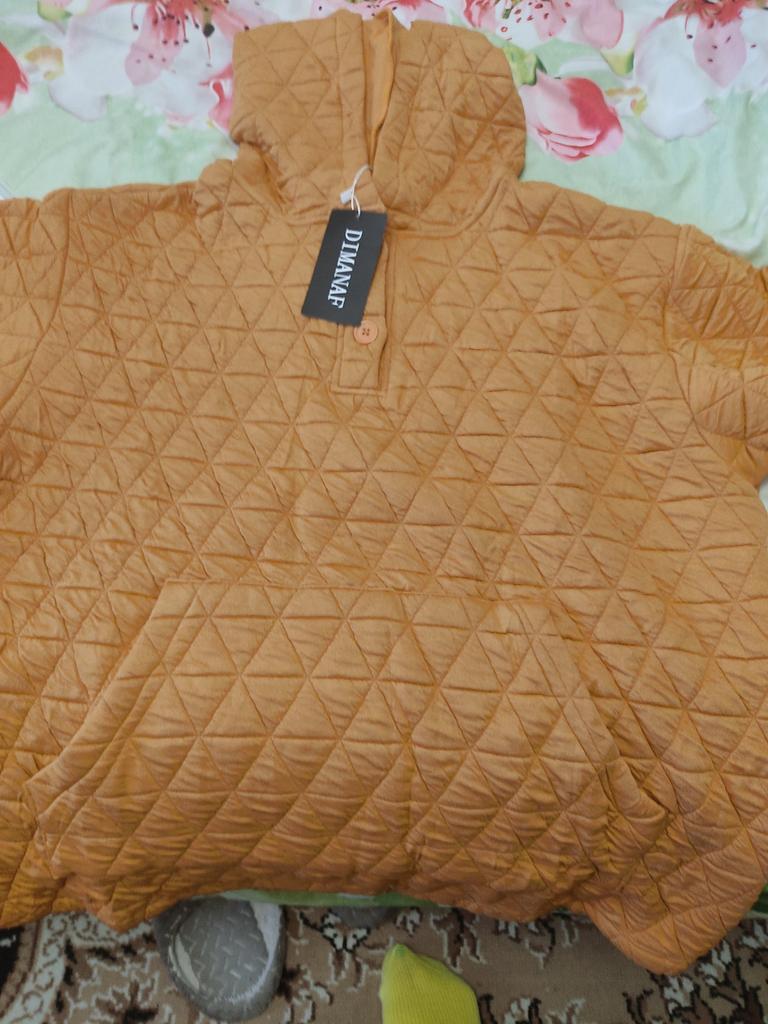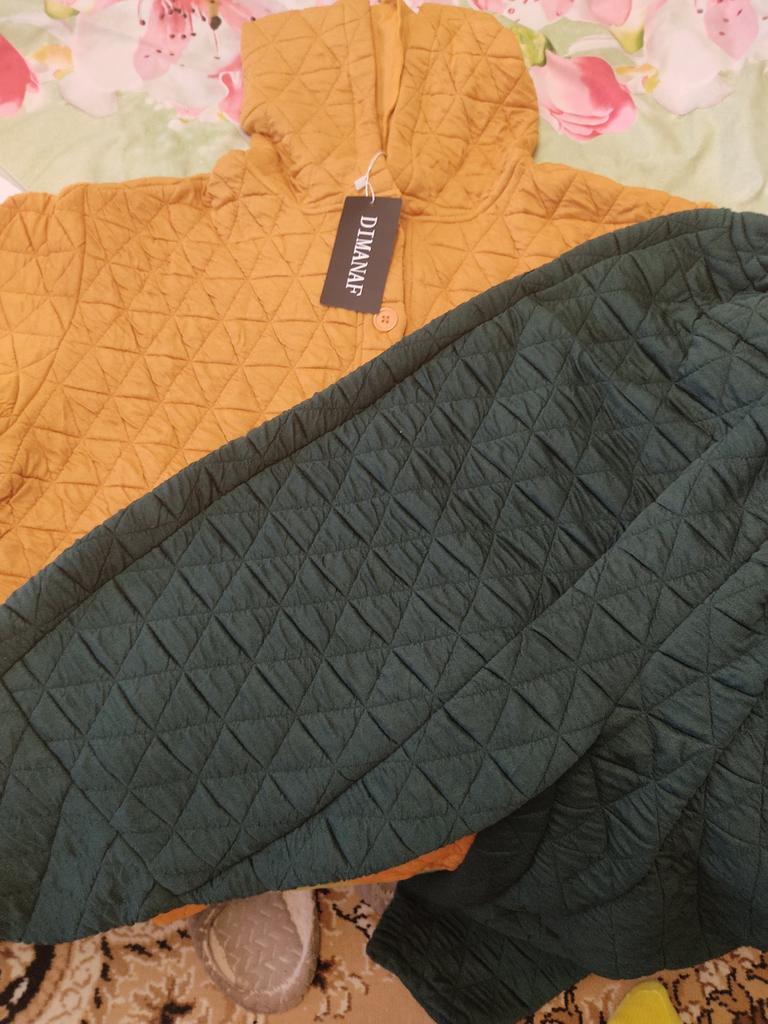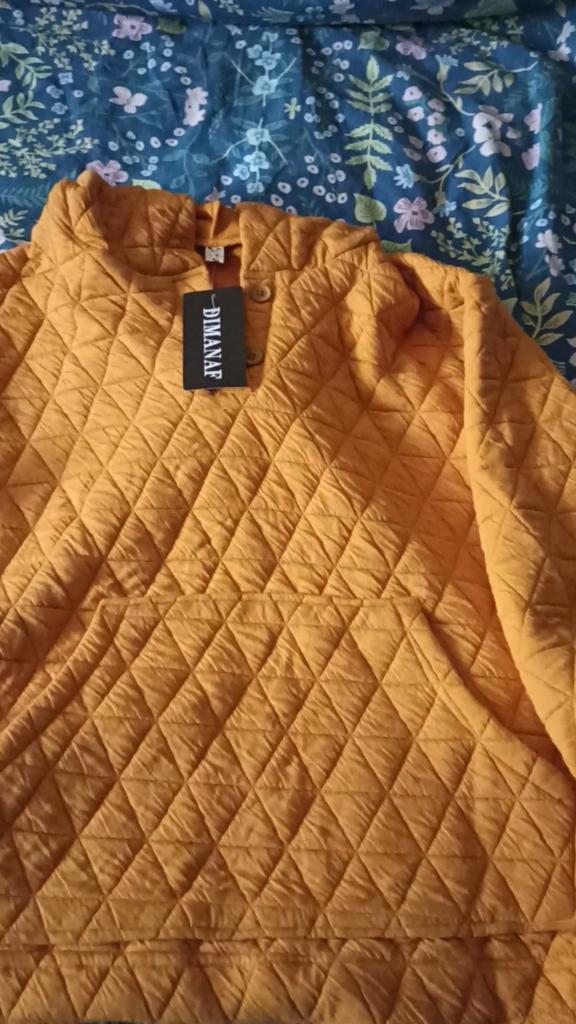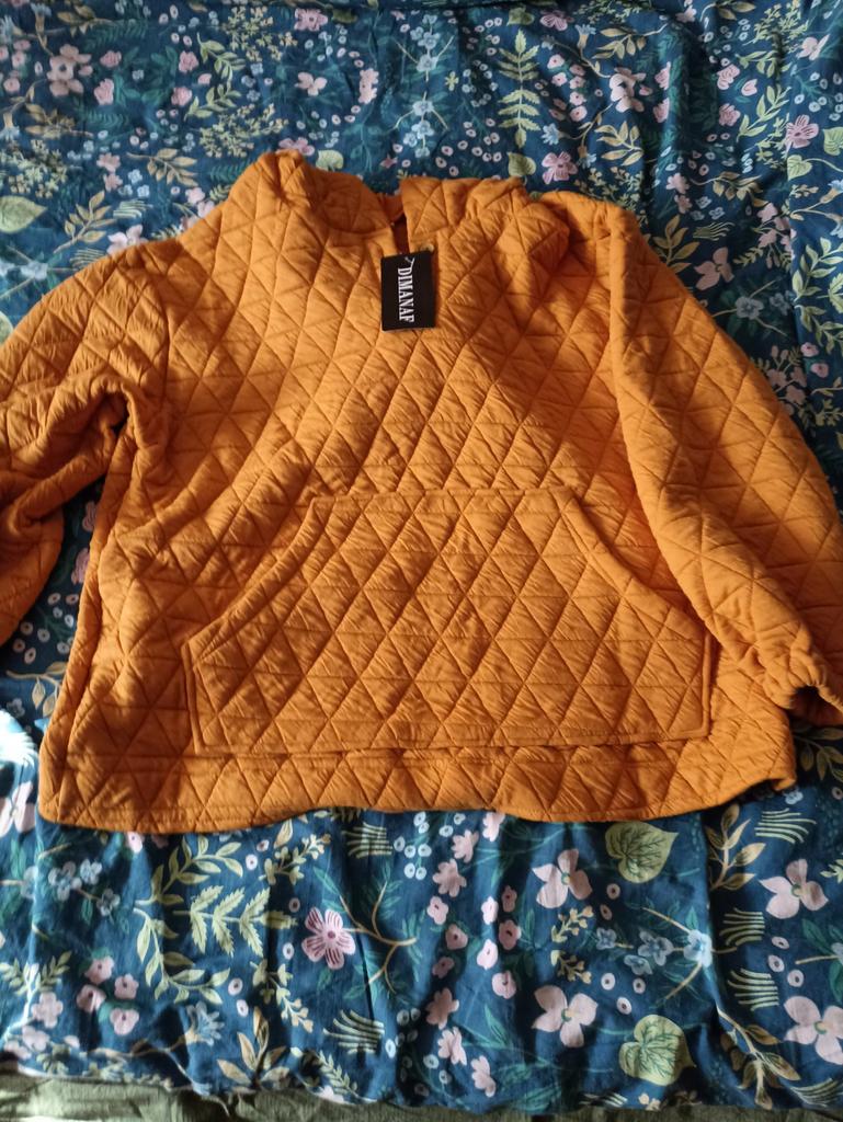 DIMANAF 2022 Plus Size New Sweatshirts Jacket Women Warm Plaid Coats Casual Autumn Loose Buttons Oversize Short Orange