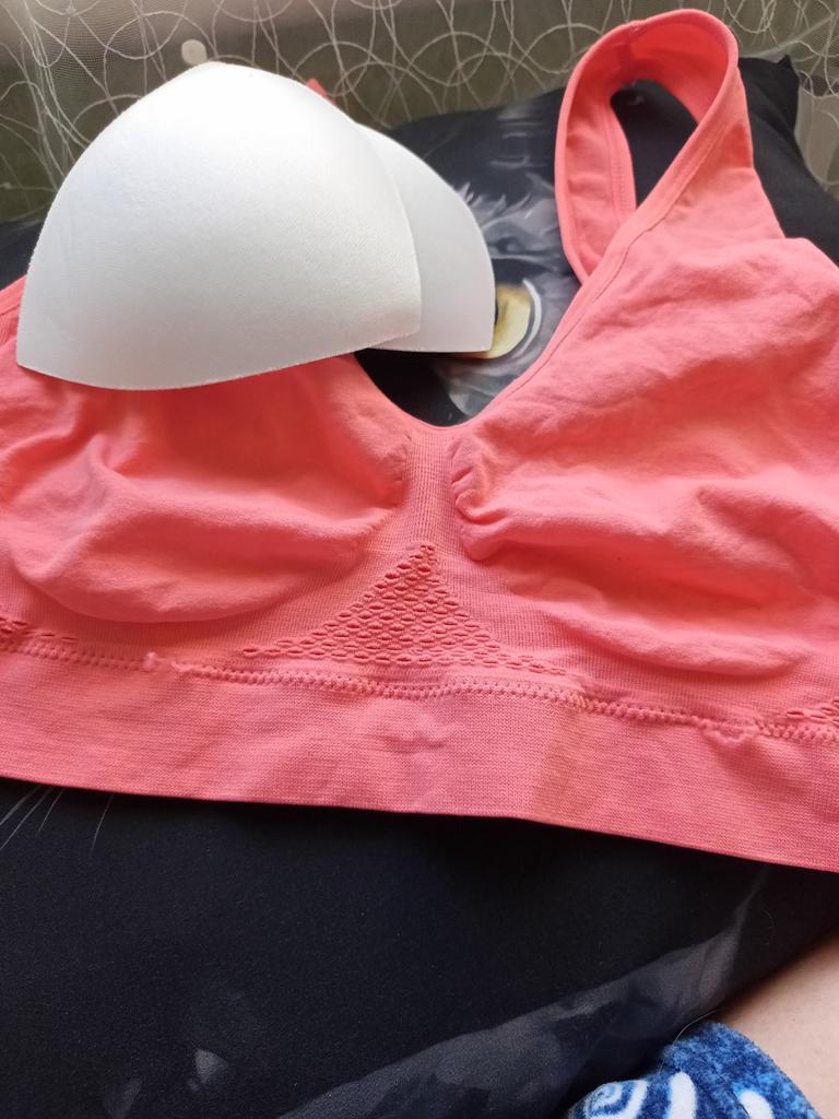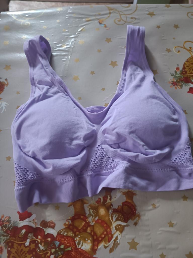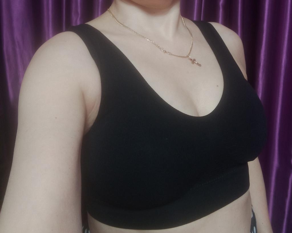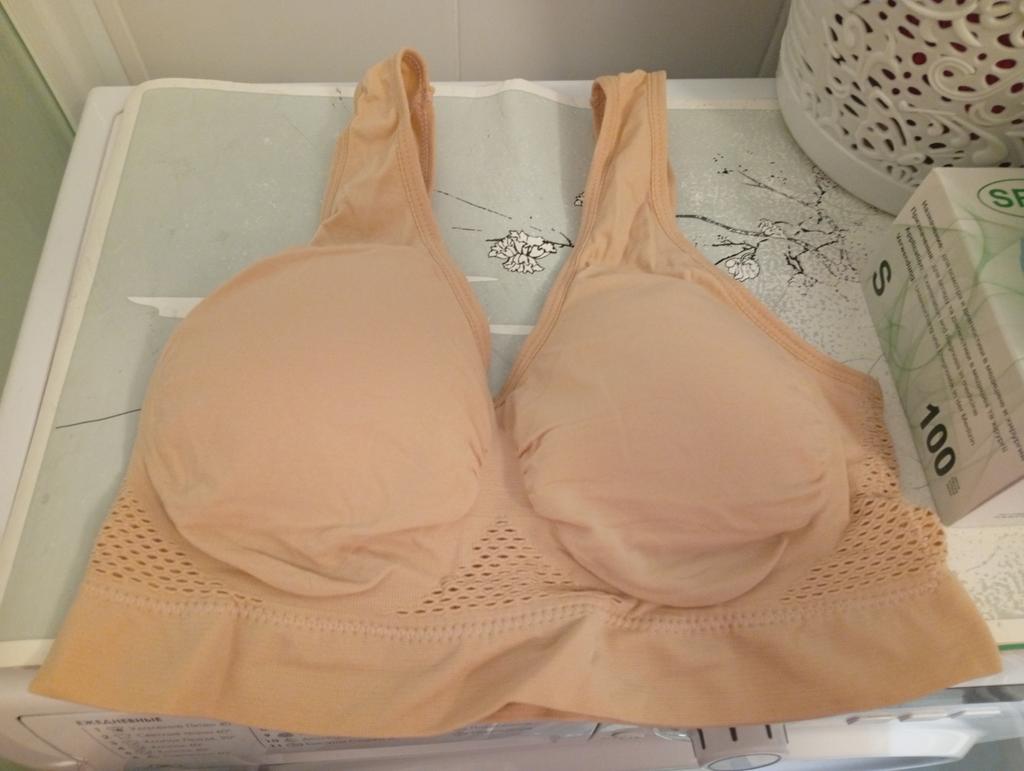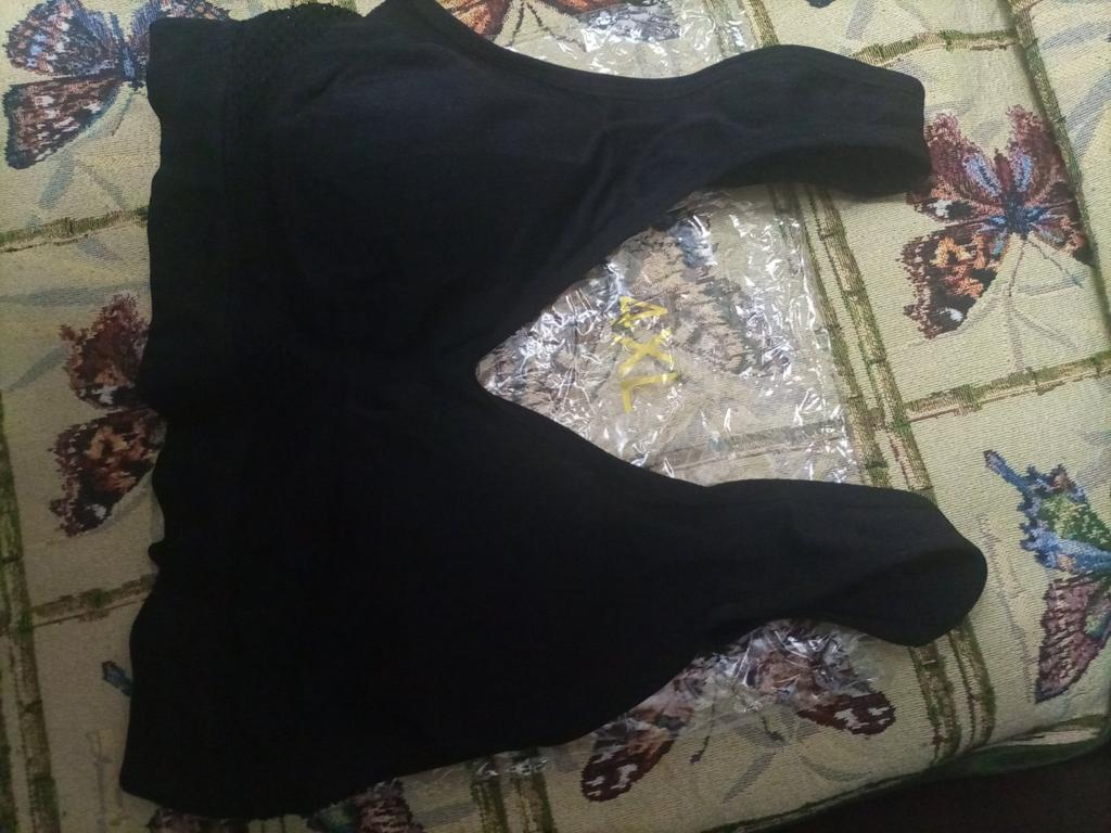 The bralette is quite simple. For a bust circumference of 120 cm, I took a 6XL. It fit in terms of volume. It doesn't support the bust, the gore between the breasts doesn't work. It's more like a top. There's no shape at all, the inserts inside are not functional. I kept it for working in the garden.