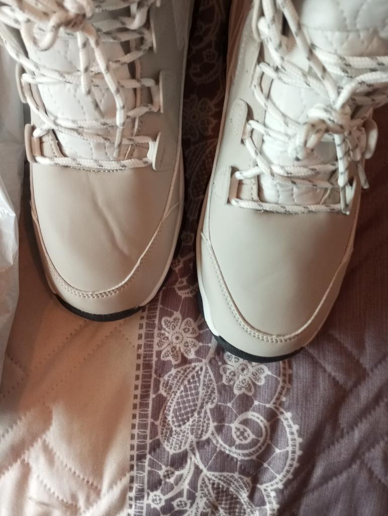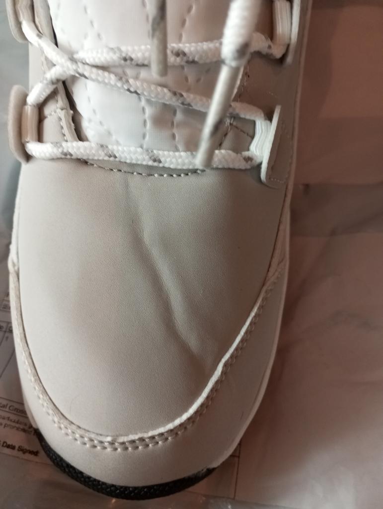 On one boot, on the instep, there are strong creases, with peeling. The second shows glue in the most visible place.