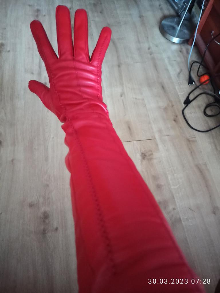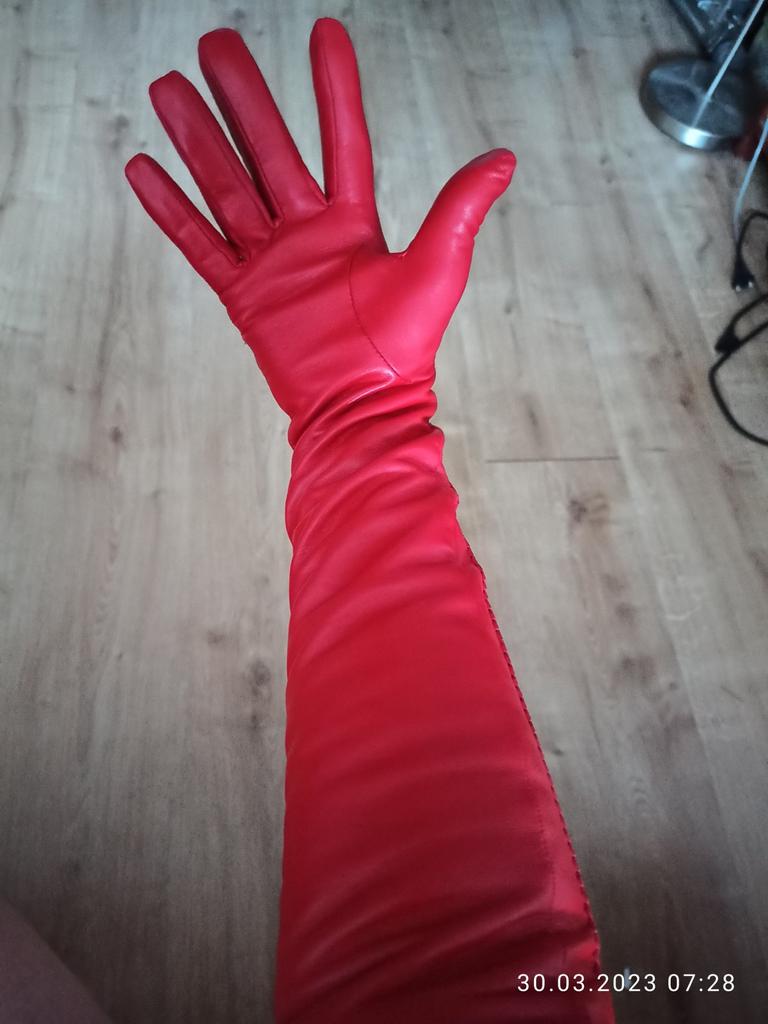 The gloves are very good, rich color, high, warm, but they are narrow at the top for me. I have about 30cm at the elbow.