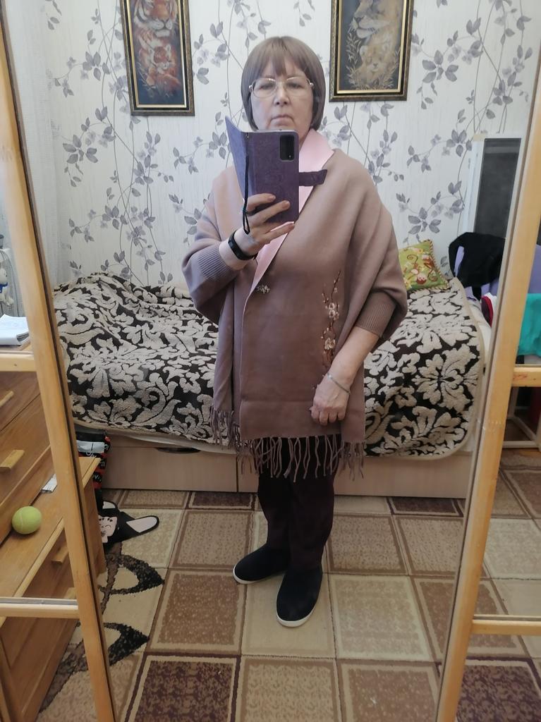 A beautiful shawl - cape - jacket. Satisfied The quality is excellent. Soft to the touch. Thanks to Jum and the seller