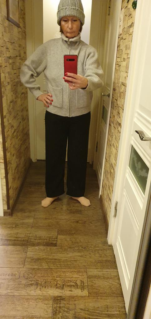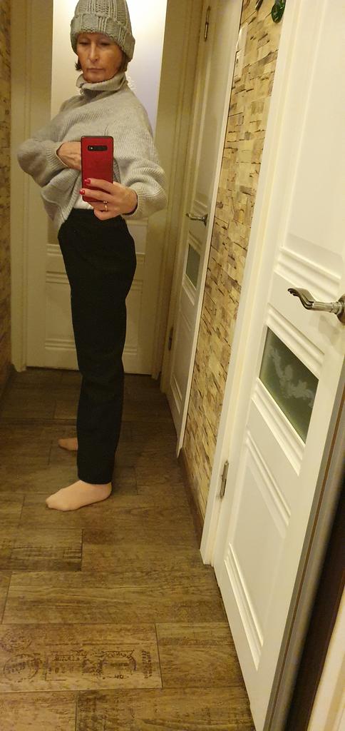 Nice, thick fabric. Size is more likely to be s, as it is not particularly elastic. According to modern fashion, the trousers are short at 164 cm.