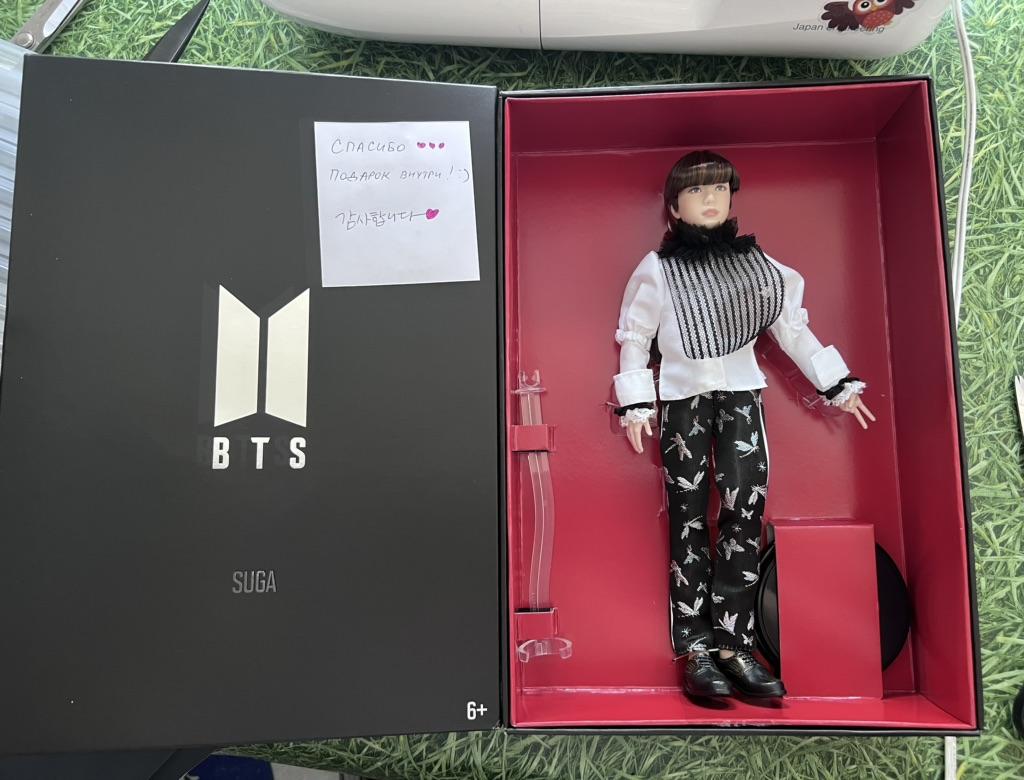 The box arrived crumpled on one edge. Suga is super handsome