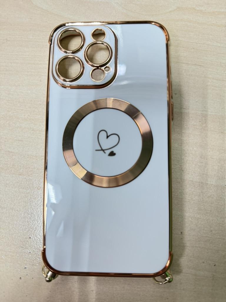 For iPhone 17 16 Pro 15 14 Pro Max 13 Samsung S25 S24 Ultra S23 FE S22 S21 Plating Love Heart Case For Magsafe Magnetic Crossbody Rope Phone Cover