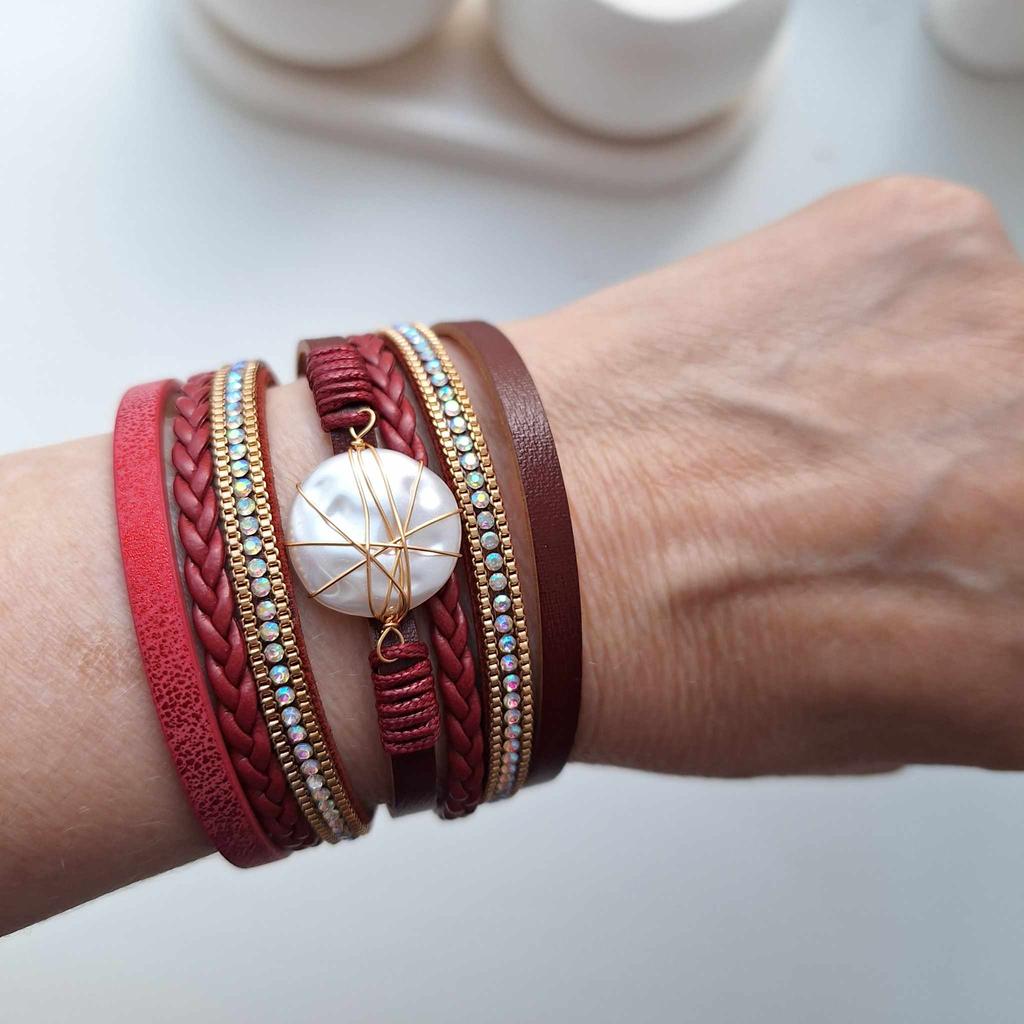Leather Bracelet for Women Boho Multilayer Wrap Bangle Femme Jewelry