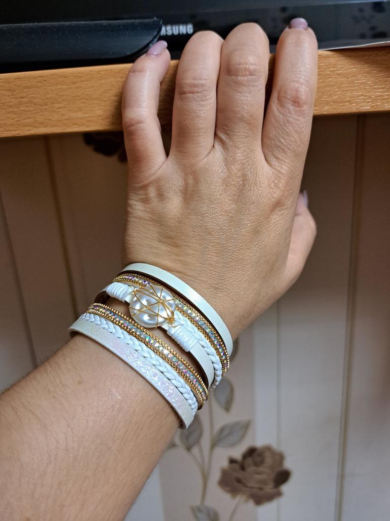 Thanks for the fast delivery, but the outermost leather strip fell off in the bracelet on the second day. You can probably put her on glue, But...