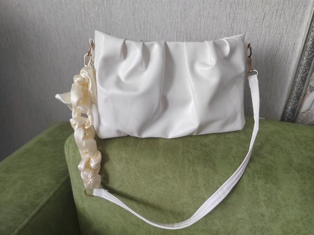 A good handbag for the money. Darling. The bow needs to be ironed. I wished the strap was longer