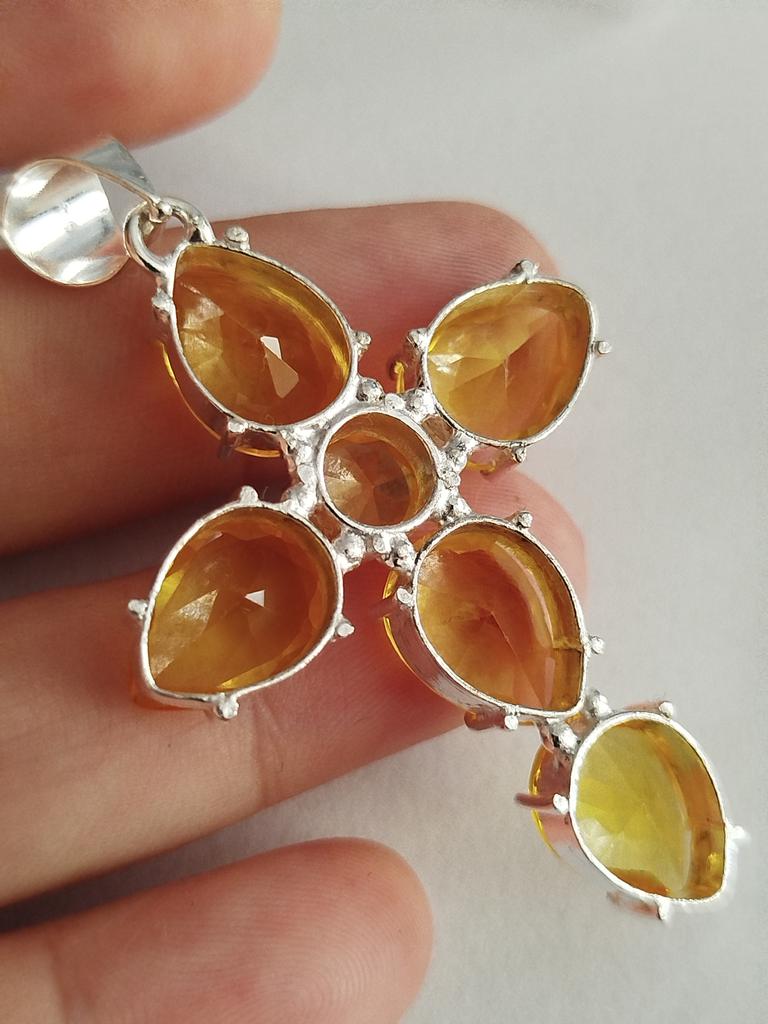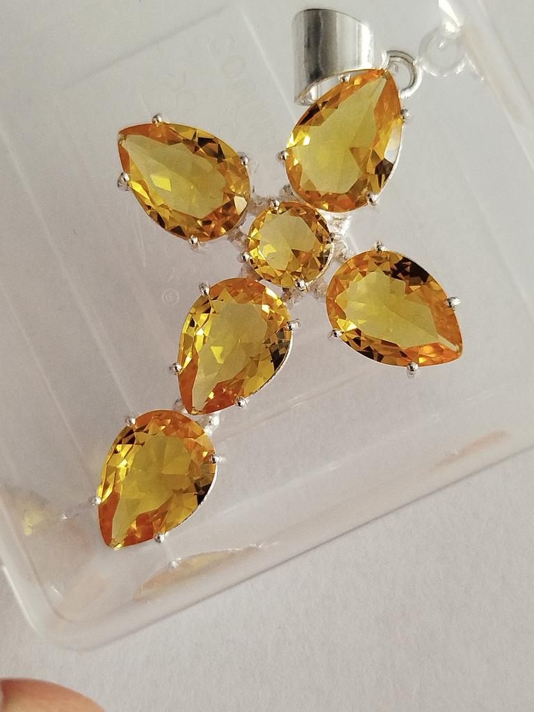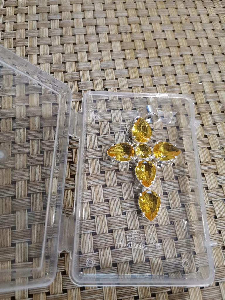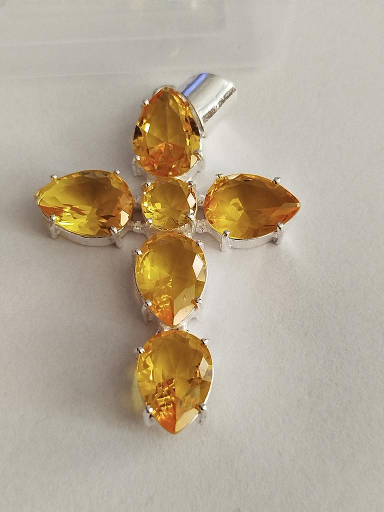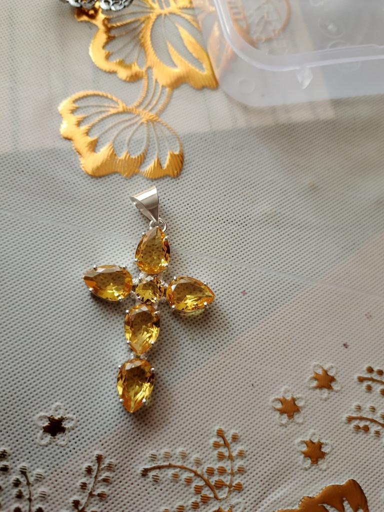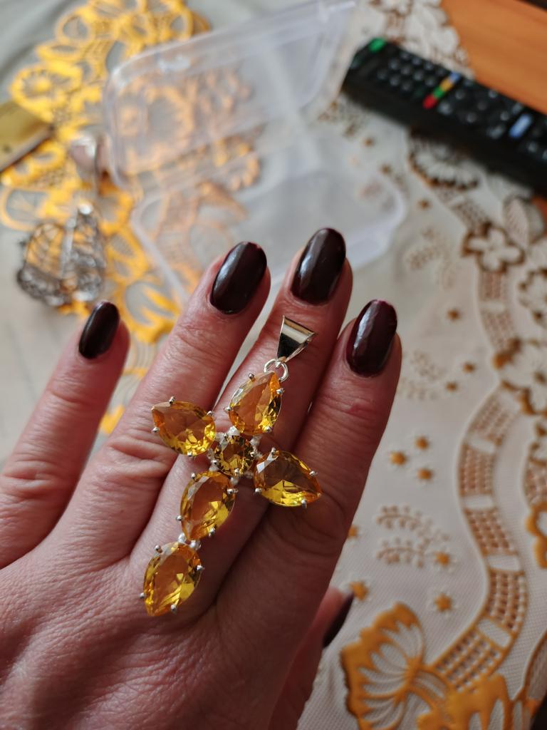 Citrine cross...maybe just glass, but it looks very beautiful...large stones, cut, stones shine...I like it...I recommend it 👍👍❤️