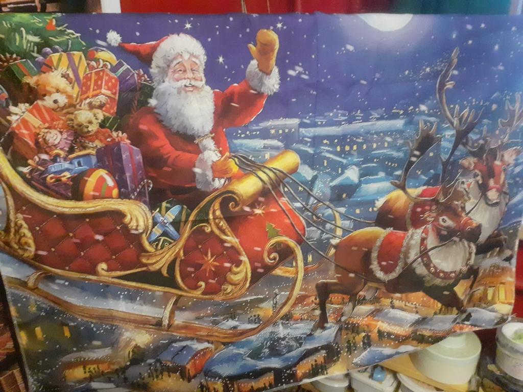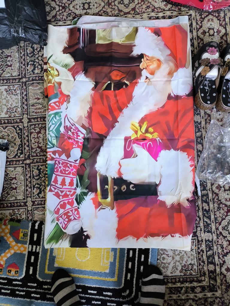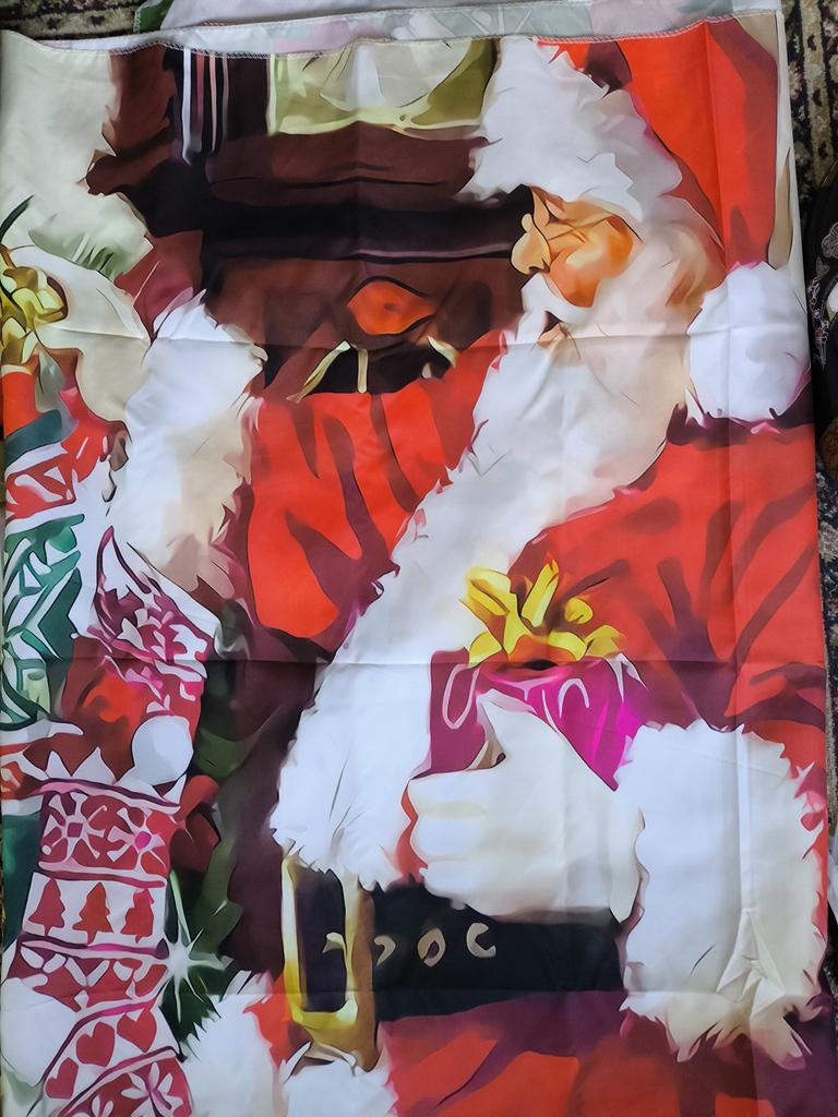 A beautiful tapestry (?) made of thin (!!!) fabric. Of course, for this price. The color is beautiful, saturated. The picture is not blurred. There are fasteners. A beautiful accessory to create a festive mood. In general, I am satisfied with the purchase🎄🎄🎄