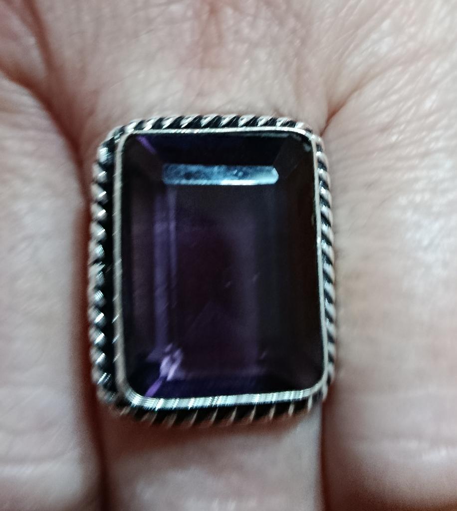 Very beautiful silver ring with amethyst. High-quality workmanship. The stone is well set, without chips or cracks. The silver hallmark is present. The size corresponds to the ordered one. It looks even more beautiful than in the photo. Ring size: 2.3 cm × 1.9 cm. Stone size: 2.0 cm × 1.5 cm.