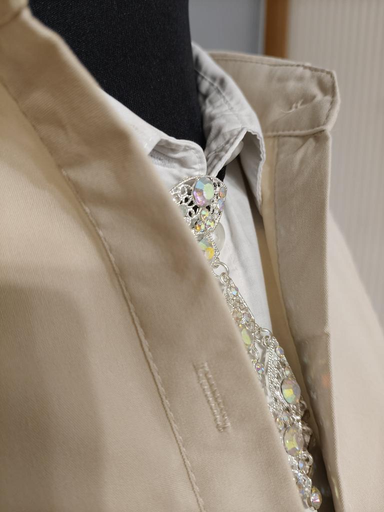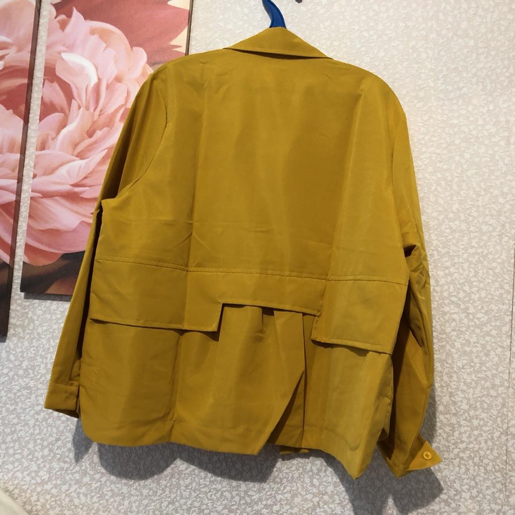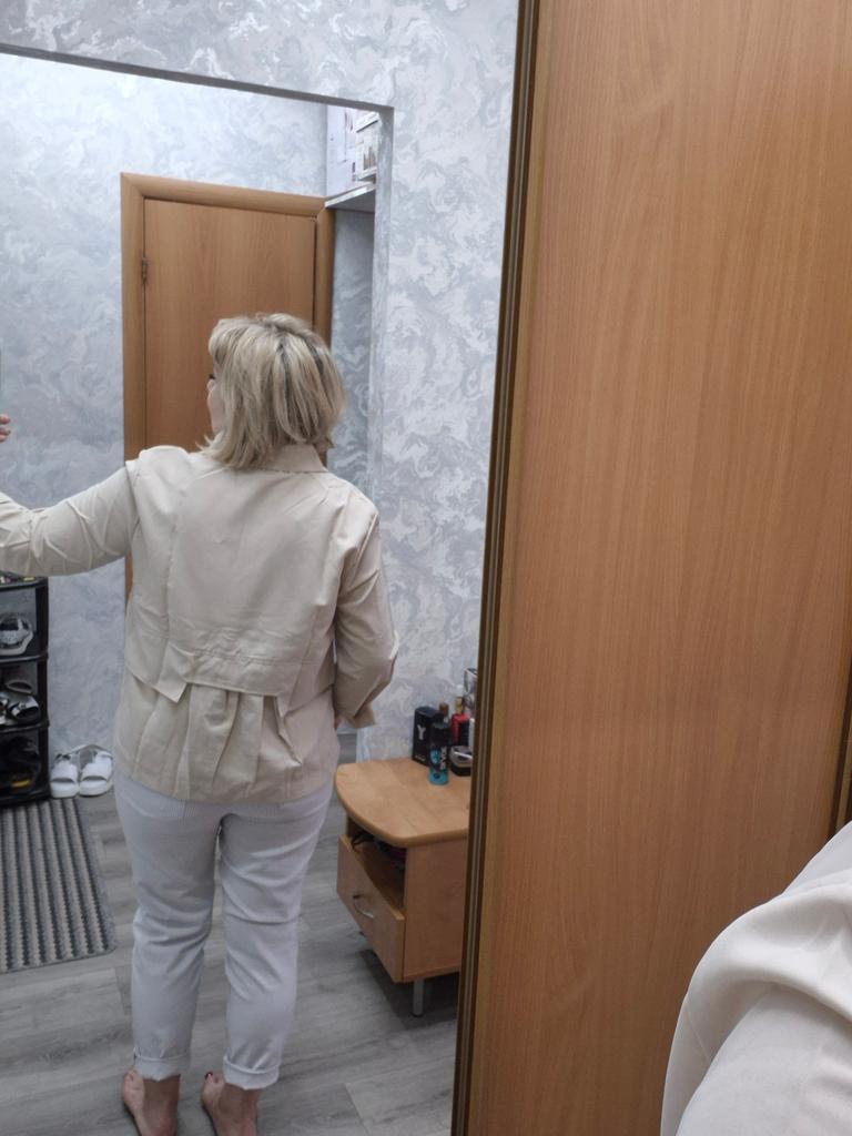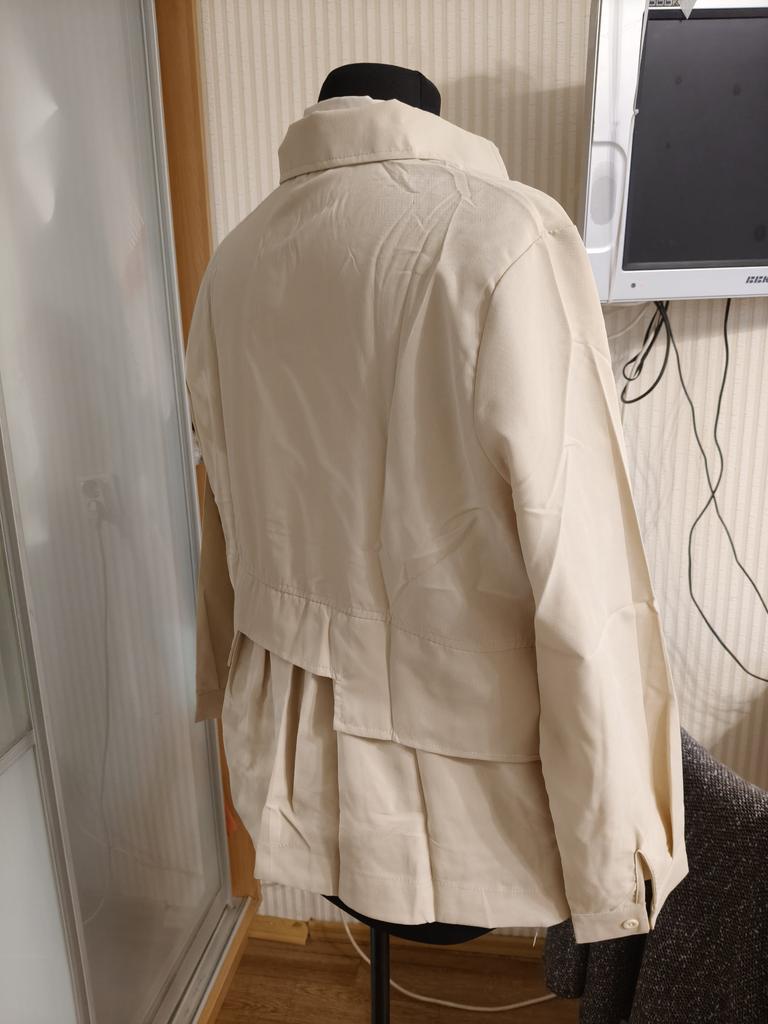 This is not a jacket at all. It's an ordinary shirt. The style is slightly more intricate. The pleat on the back is not like in the photo—it's just slightly gathered. The collar sticks out. The idea is good, but they saved on the fabric. It's not worth the money.