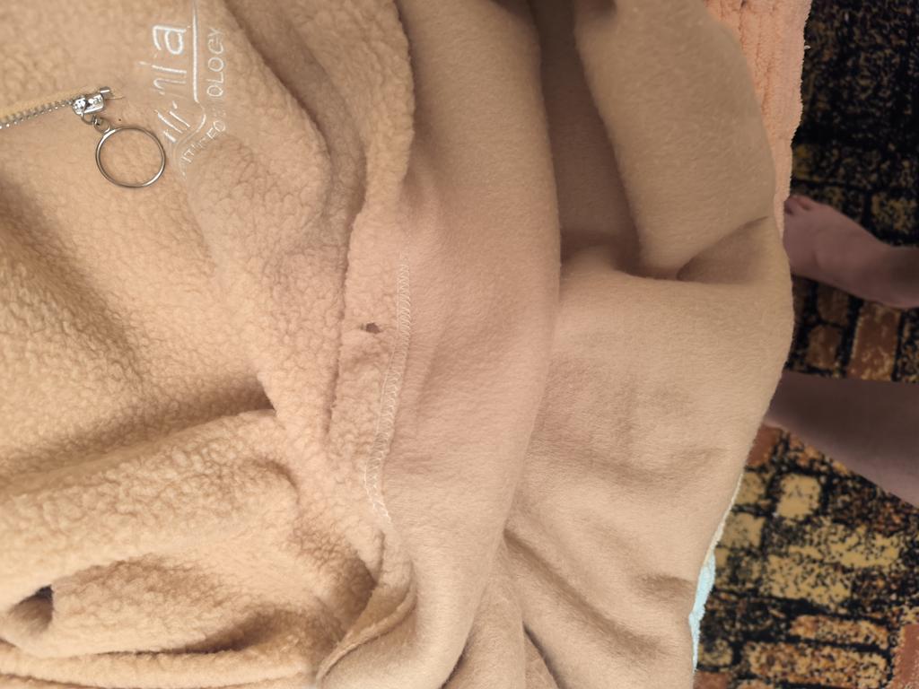 The material is good, warm, pleasant color. The only minus is the zipper, it opens and closes poorly, it's sewn crookedly, but if desired, you can replace it with your own zipper, which I will probably do. Has no unpleasant odor