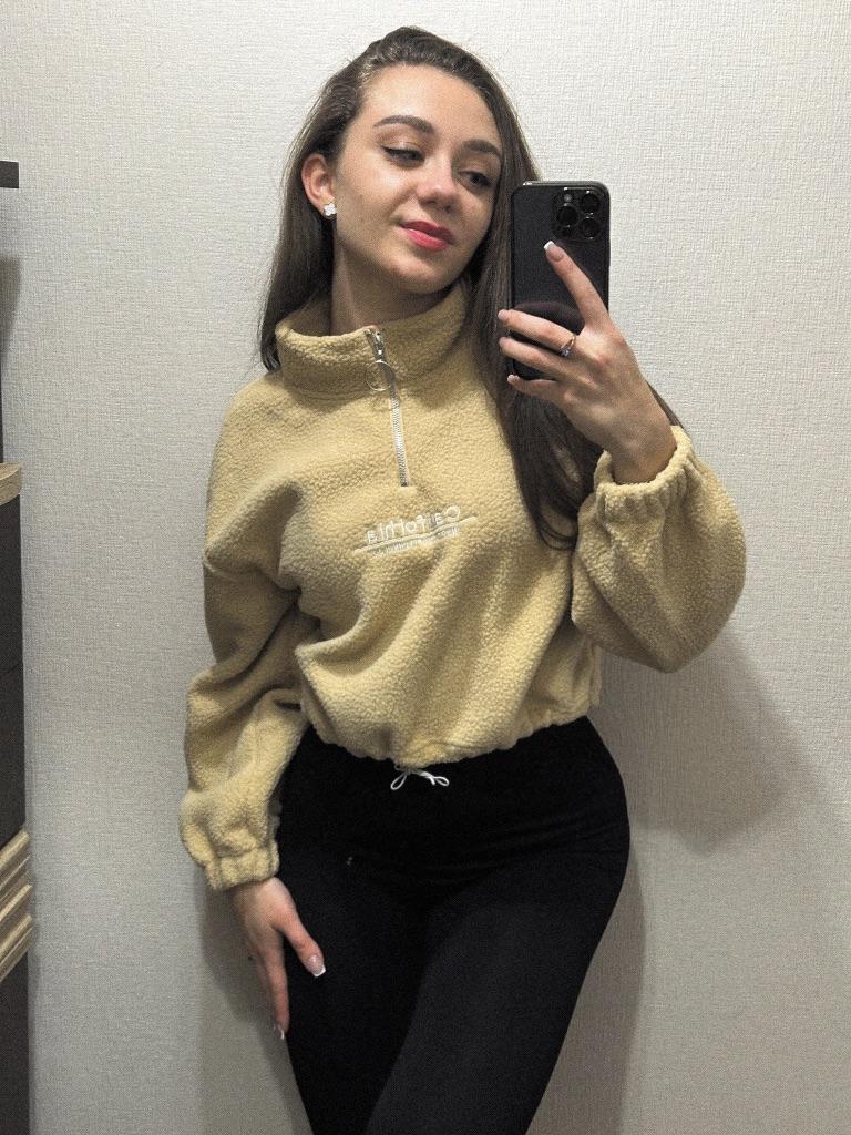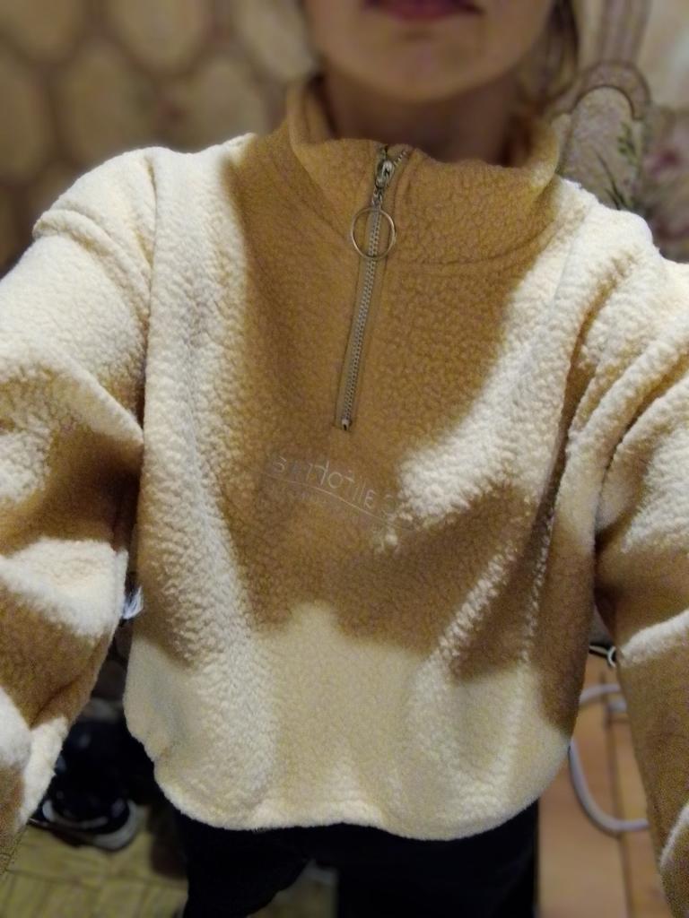 The sweatshirt is really warm, but the zipper does not open well, and please note that it is better to take a size larger, because the sleeves and length are short