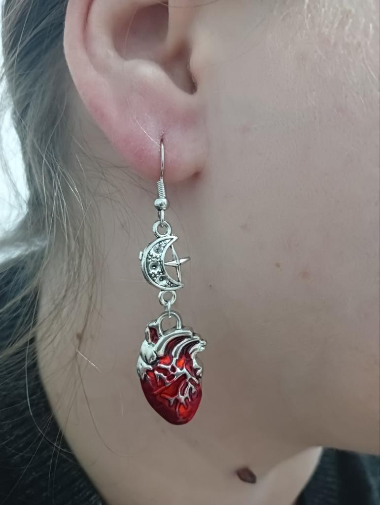 Unique Halloween Gothic Punk Beating Heart Crescent Cross Pendant Earrings Halloween Gift