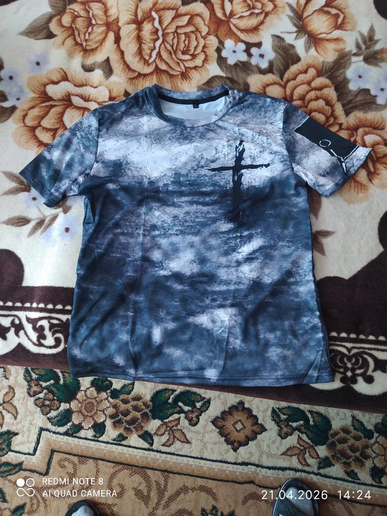 Vintage Jesus Cross Print Men's T Shirts Summer Polyester Breathable Round Neck Loose Short Sleeve Plus Size Rock Street Tops