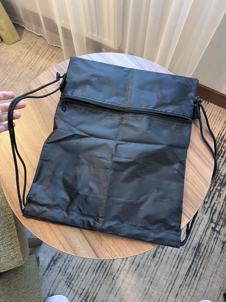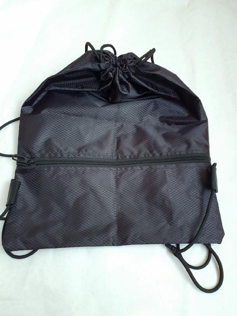 Portable multifunctional backpack. Very roomy and durable. Made from water-repellent material. Inside there is a small pocket with a zipper. Size 44.5 * 36.5 cm. Suitable for training and walking shoes. There is a large selection of different colors. I chose black. Definitely recommend.