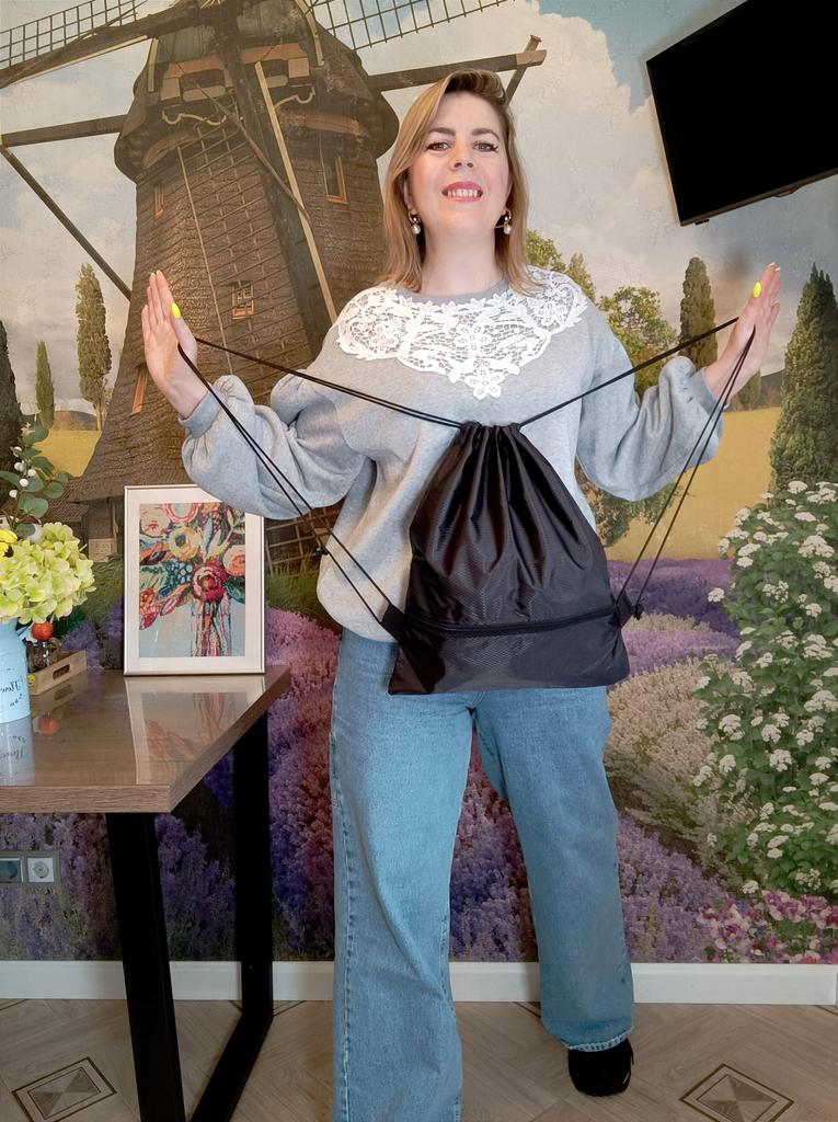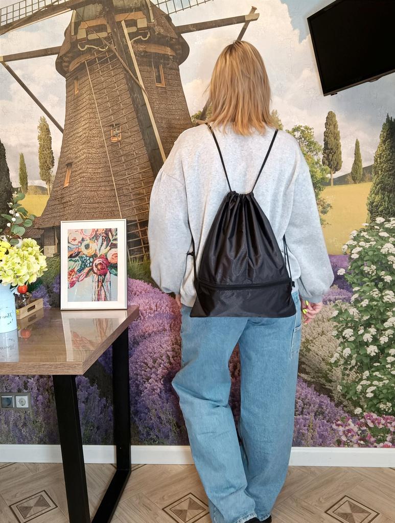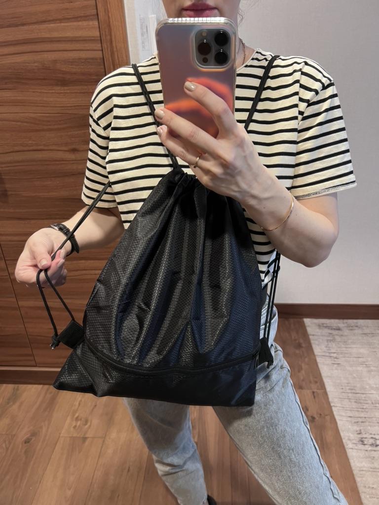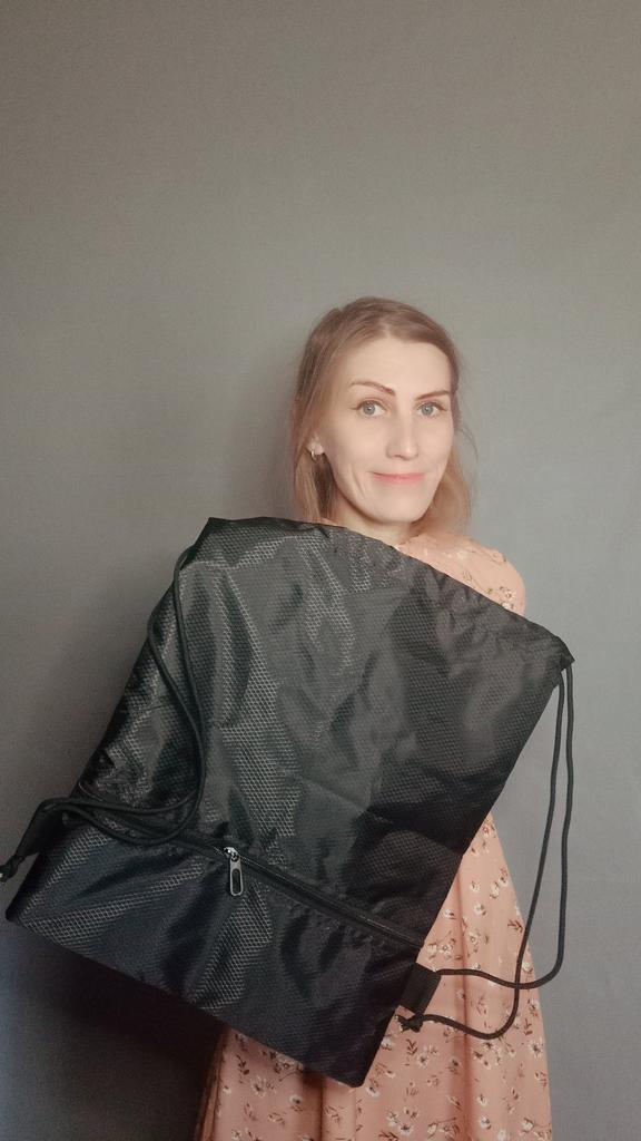 Backpack - a bag with strings 🎒 The seller has a wide selection of colors. I chose black for practical reasons 🖤😅 Such a backpack is perfect for shoes or sports clothes. The backpack is strong and very roomy. Size: 44 cm by 35.5 cm The backpack is tightened using laces. There is an inner small pocket for small things, which is very convenient 👍☺️ I liked the backpack ☺️. I recommend 🛍️. If the review was useful, put it as a favorite ❤️🖤 I received the goods in 30 days in a combined package 🚚 The track was tracked completely. The arrival at the delivery point was notified by sms 📲 Packaging: ordinary postal package and individual packaging. Goods without defects and defects, without foreign odor. Happy shopping and fast deliveries to everyone 🛒☺️🚀🌼