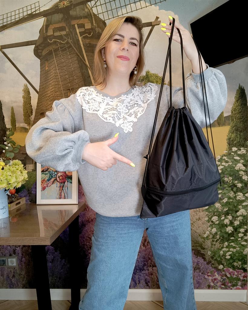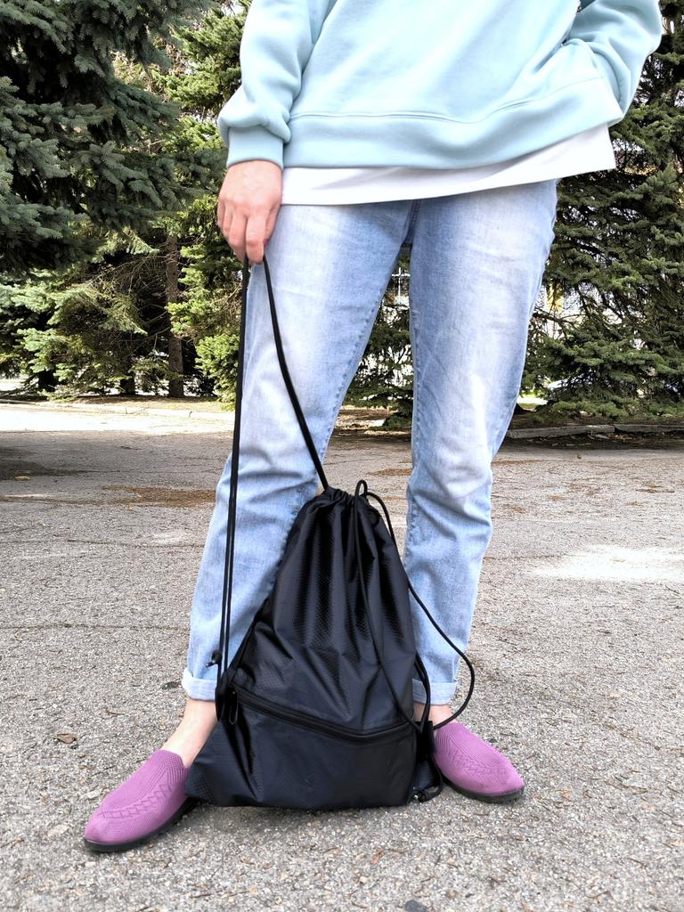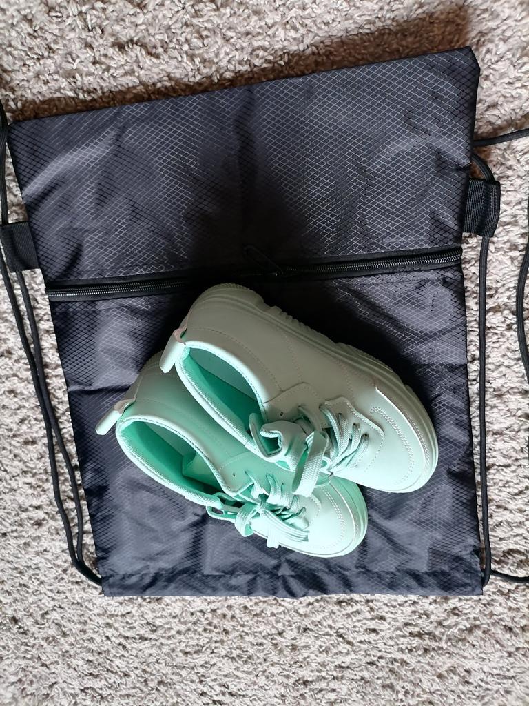 Bag backpack for replacement shoes 👌 Size 44 by 36 cm The backpack is tightened with laces on 2 sides, the fabric is waterproof and durable. There is an outer zippered pocket and 2 inner zippered pockets. The backpack is roomy and can accommodate size 42 shoes.. Very light. Can be used for shoes and clothes for school, gym or pool There are 12 colors to choose from!
