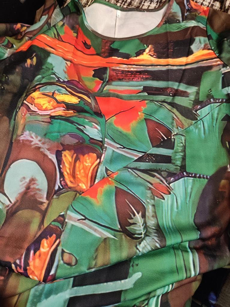 The dress is good, bright, as in the photo. The sewing is high quality. 2XL fits 52