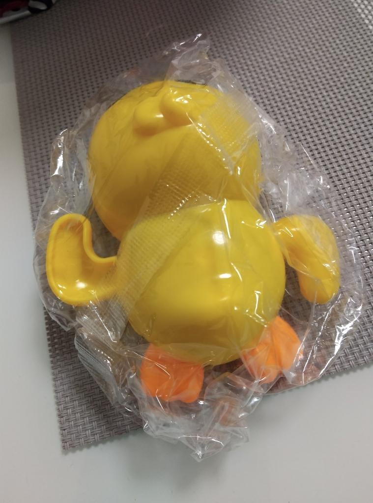 The duck arrived with broken packaging, just a bad bag. I'm disappointed.