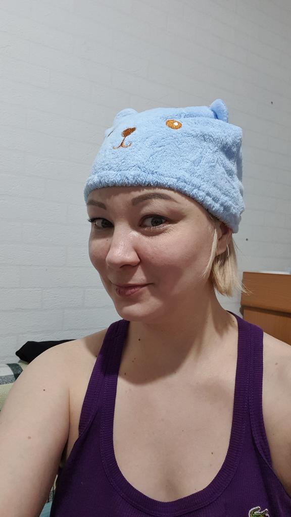 Very soft cap after shower, warm, especially convenient in winter.