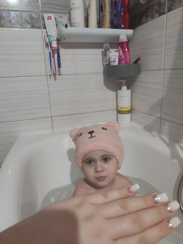 Good cap, it's small, for children. After a shower, very convenient.