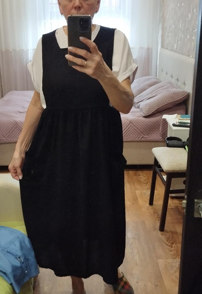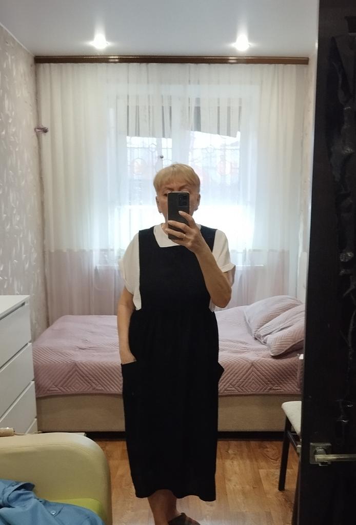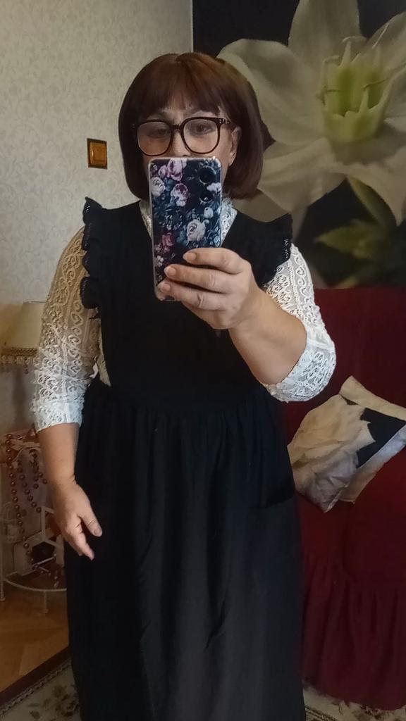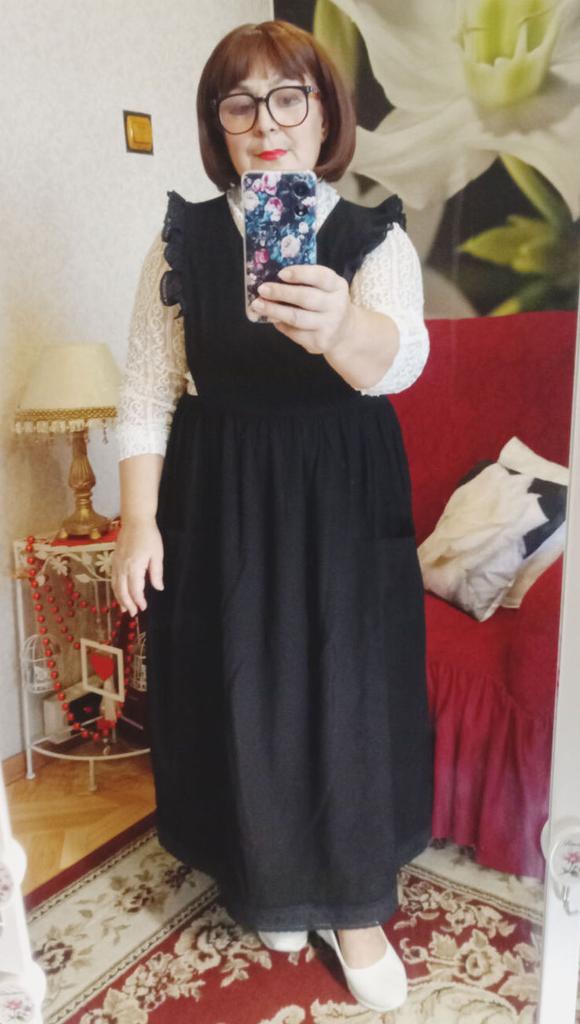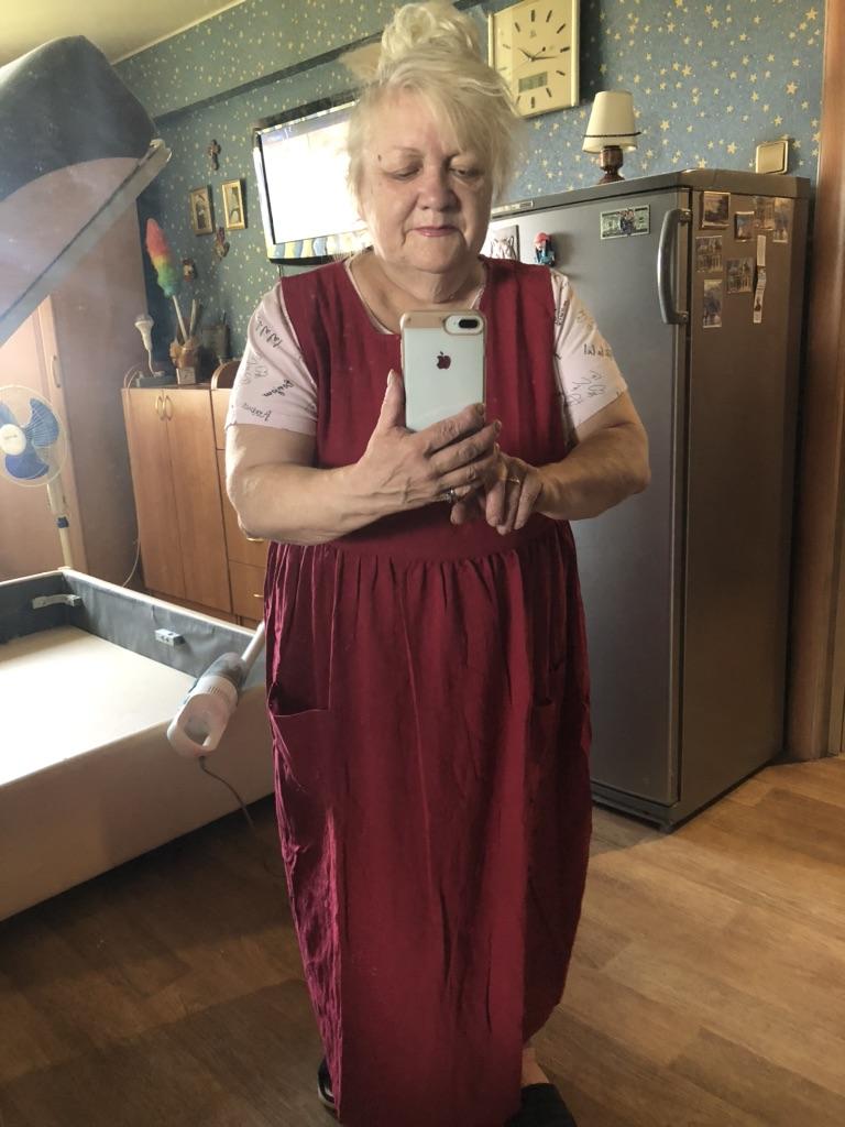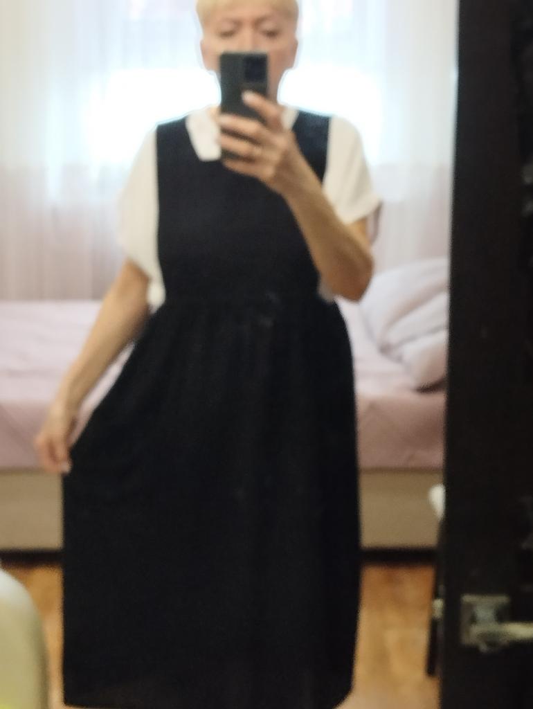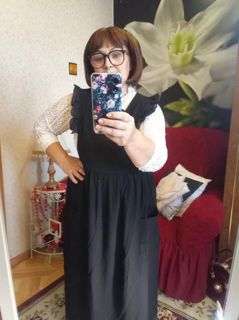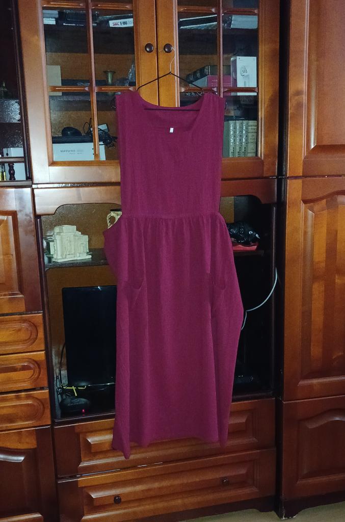Interesting apron, probably will be comfortable in the summer, to be bustling around the kitchen in the heat. Only very bulky, increases the dimensions. Sewn neatly, no threads sticking out. The fabric is a blend, looks like cotton. For my size 50-52, it's just right