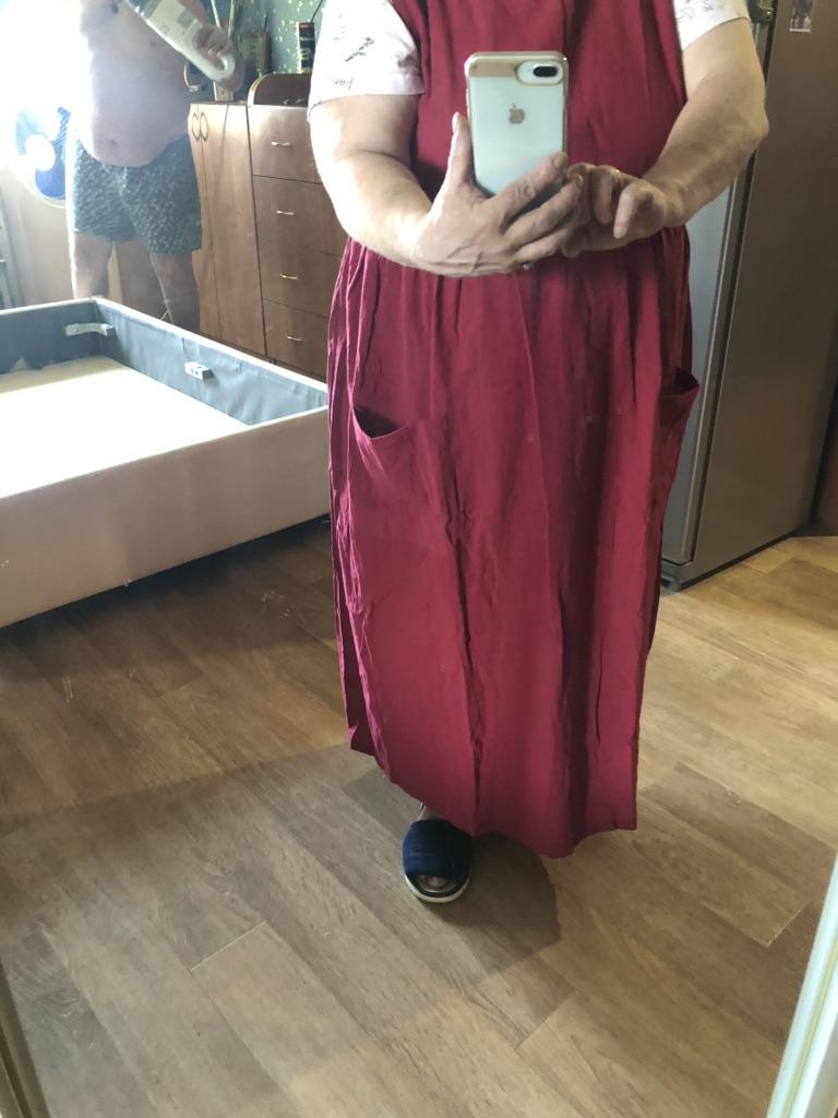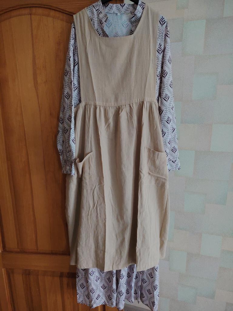 Women's Cotton Hemp Apron High Waist Long Circumference Home Dress Loose Long Dress
