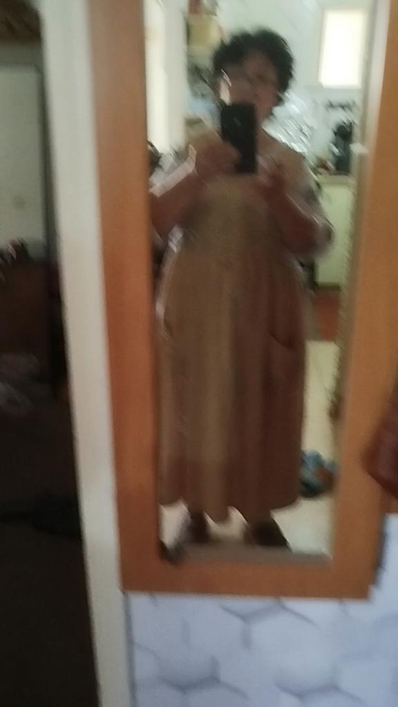 Good home apron. But I don't need one like this. I didn't try it on. The size is right. The color is wrong.