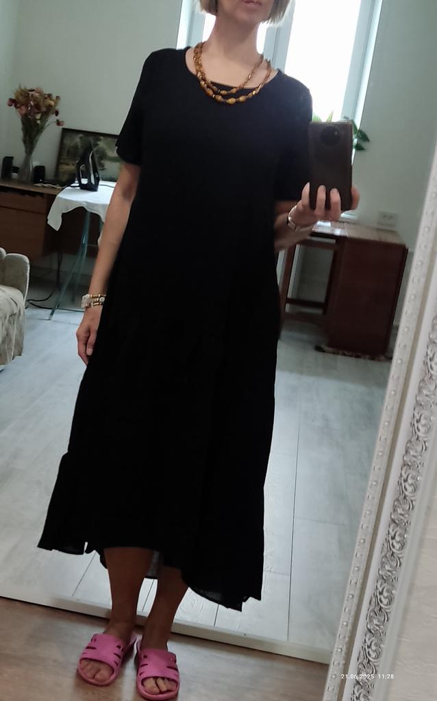 I ordered two dresses: black and yellow. The yellow fabric is slightly translucent if you wear a dark dress under it. And the black one looks very noble. I'm waiting for summer to show it off. Thanks to the manufacturers!