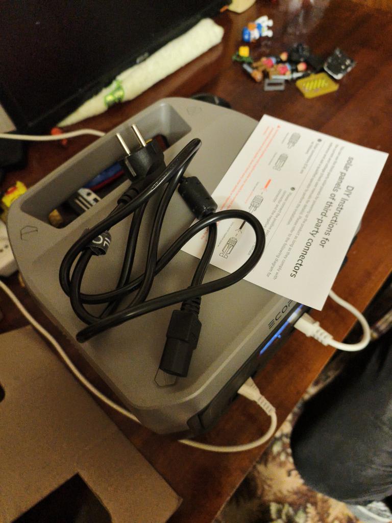 Ordered ecoflow with a discount, paid and waited more than 2 weeks, arrived with 28% charge, charges very quickly, everything works, made no additional payments, the kit included one cable to a wall socket