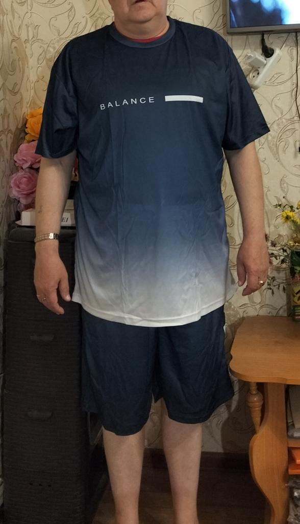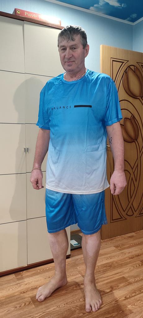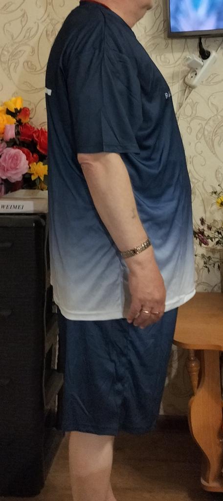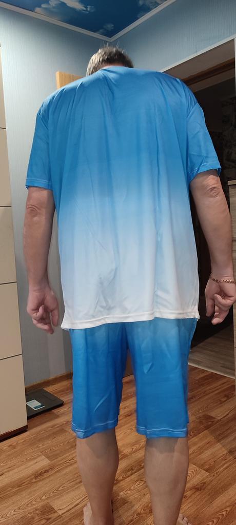 My husband is 52 Russian measurement, but the size of 3XL is large - the T-shirt and the shorts are too long. We will need to shorten them. The quality is poor, synthetic material that gets wrinkled easily.